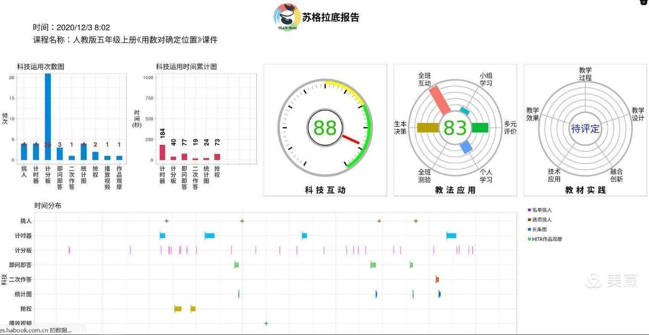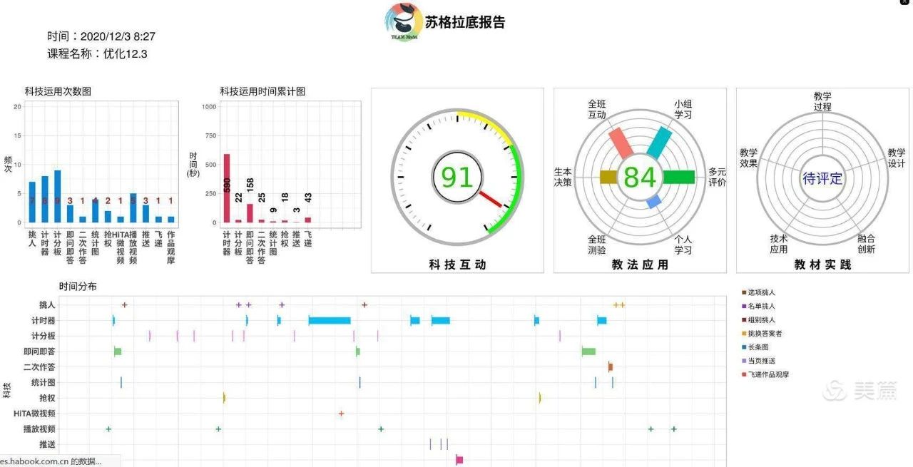 高偉老師的《優(yōu)化》一課,扎實(shí)的基本功、豐富的教學(xué)語言、合理的教學(xué)設(shè)計(jì)、流暢的教學(xué)過程、特具匠心的教學(xué)指導(dǎo),營造了一個(gè)高效、活躍的課堂氛圍。通過醍摩豆智慧教室系統(tǒng)將課堂數(shù)據(jù)整合,及時(shí)反饋、TBL團(tuán)隊(duì)合作學(xué)習(xí)模式、精準(zhǔn)挑人等,實(shí)現(xiàn)了一對一的教學(xué)目標(biāo)。