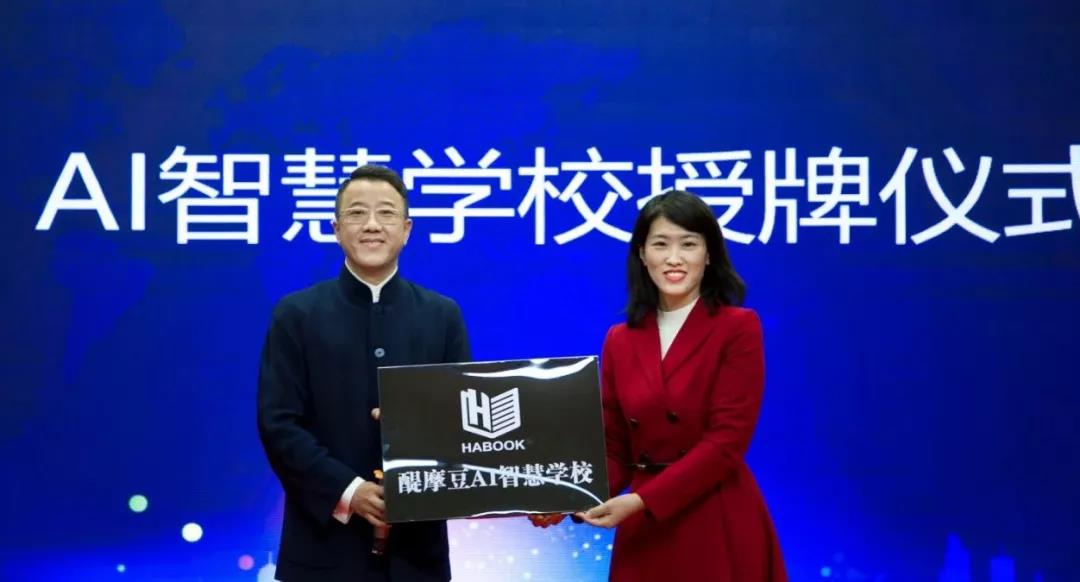 周朝董事長代表醍摩豆智慧教育研究院授予雙語學(xué)校為“醍摩豆AI智慧學(xué)校”。呂輝校長從周董手中接下這塊凝聚著辛勤汗水和結(jié)晶的這份榮譽,它代表著雙語學(xué)校在智慧教育道路上所取得的對智慧課堂建設(shè)的認(rèn)可與鼓勵。