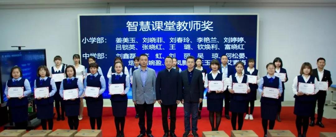 周朝董事長、于洲江校長、王宏武校長、王永慶校長、呂輝校長為獲得智慧教師獎、最佳新人獎、特殊貢獻(xiàn)獎項的教師們頒獎。