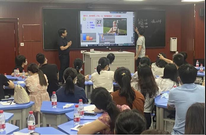 在課堂教學培訓板塊,劉彬秘書長現(xiàn)場建立班級,瞬間,試點校負責人轉(zhuǎn)變身份成為學生,在劉彬秘書長的帶領(lǐng)下,參與搶權(quán)、作答、討論交流,在動手操作和師生的互動中親身體驗醍摩豆智慧教育十八般武藝,體會數(shù)據(jù)決策下的精準教學。同時,劉彬秘書長運用即問即答、智慧挑人、二次作答、計分板帶大家深度體驗技術(shù)支持下課堂導入的方式和方法;讓老師們領(lǐng)悟技術(shù)支持的課堂講授不是單獨的學習技術(shù),是從課程設(shè)計、組織學習再到技術(shù)的組合使用。