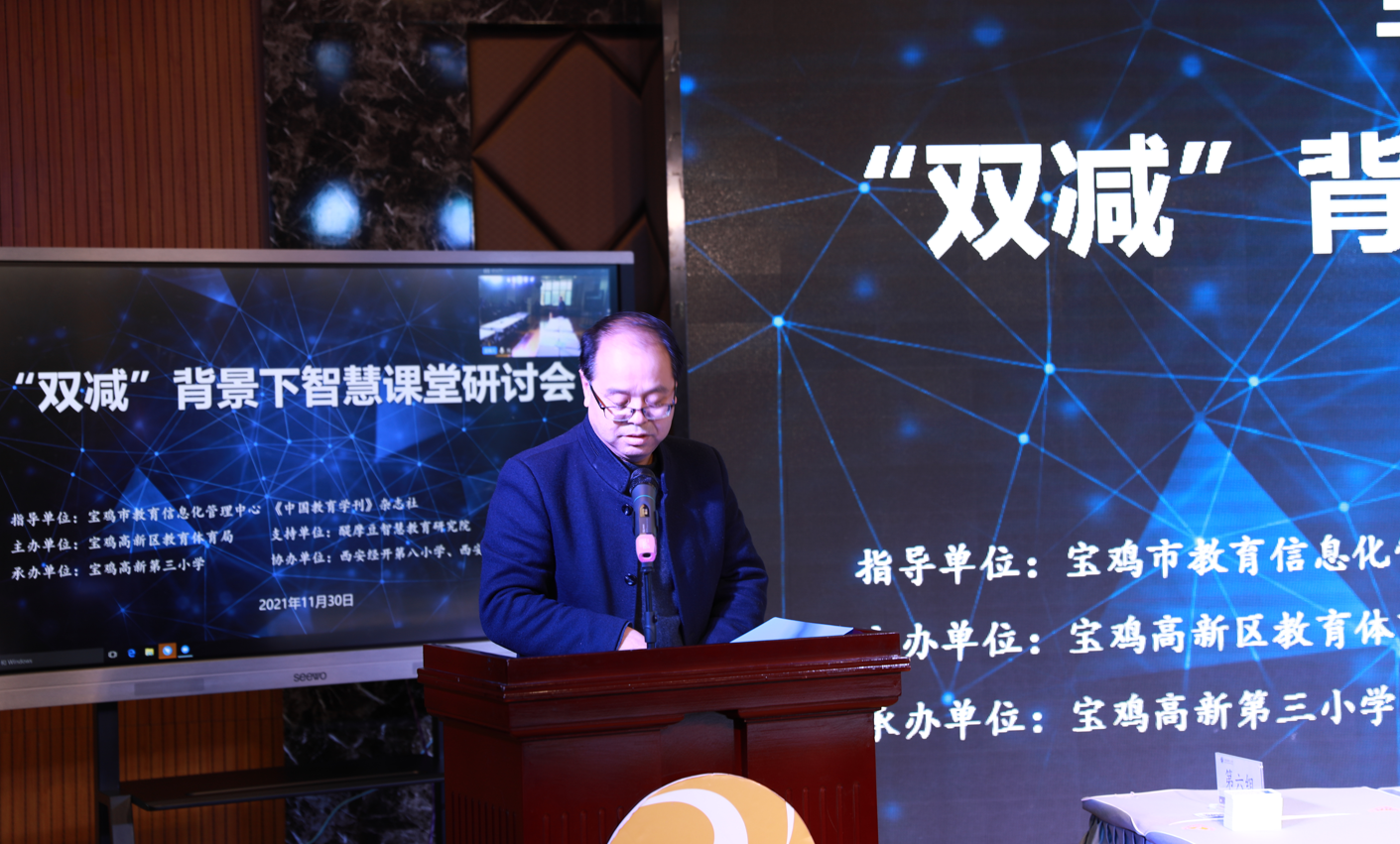 11月30日,寶雞高新區(qū)“雙減”背景下智慧課堂研討會在寶雞高新第三小學的藝術(shù)樓報告廳隆重召開。寶雞市教育信息化管理中心主任寧紅軍、寶雞高新區(qū)教育系統(tǒng)黨委書記、教體局局長唐宏、高新區(qū)教體局副局長劉亞勤參加會議,會議由高新區(qū)教體局考管辦主任袁會兵主持。