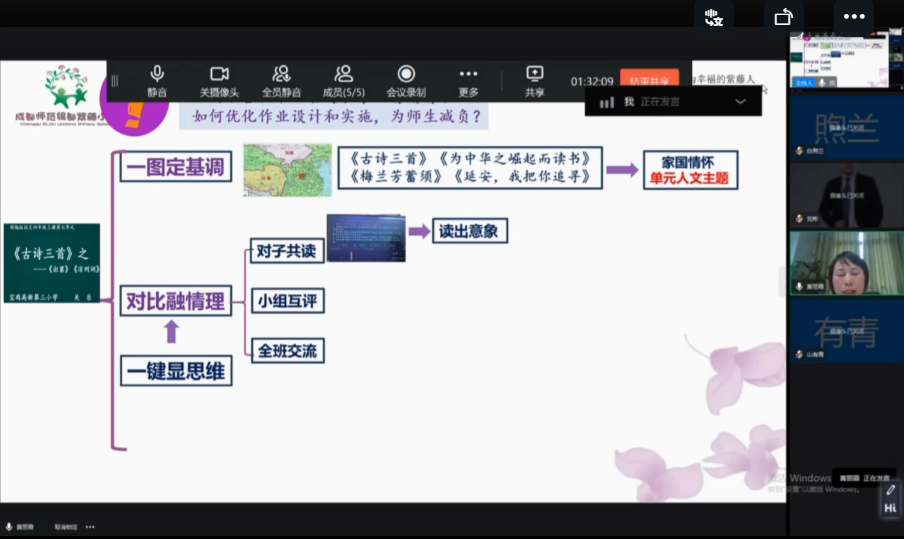 下午,西寧市陽光小學校長山有青,成都師范銀都紫藤小學黃麗霞主任,成都高新區(qū)西芯小學白煦蘭主任,醍摩豆智慧教育研究院劉彬教授結(jié)合名師課堂教研平臺采用線上點評方式對本次研討課進行了精準點評。