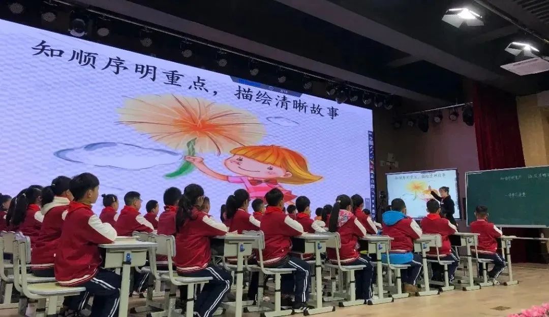 語文組以視頻的方式再現(xiàn)了課前會。在課前會上,我們聽到了質疑、建議、討論,看到了思維的碰撞。接著張波老師以《知順序明重點,描繪清晰故事》為題,進行了四年級上冊五單元任務四的展示。