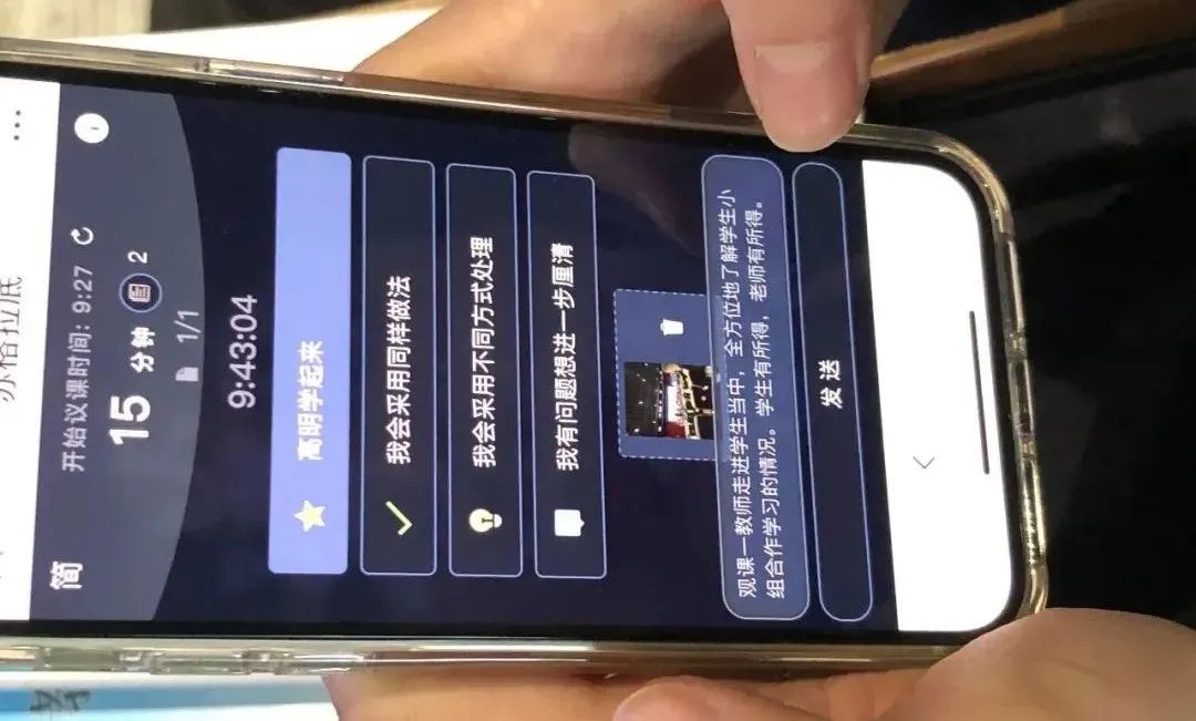 聽課老師們則進入智慧課堂系統(tǒng),用手機進行線上教研。在張老師上課過程中,語文組各位老師也根據觀察量表從多方面進行觀察,并在課后進行匯總。