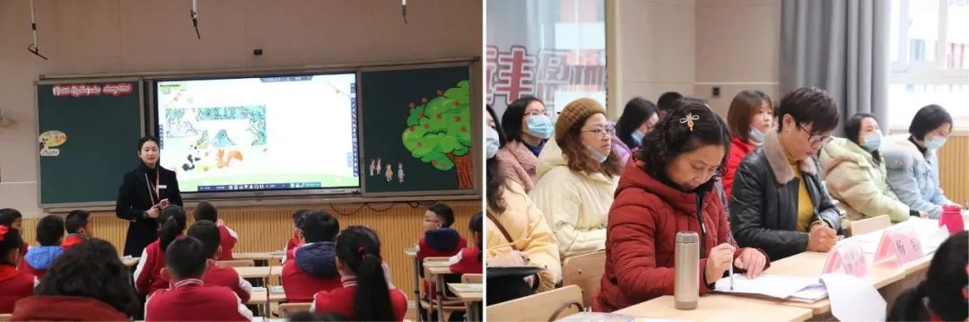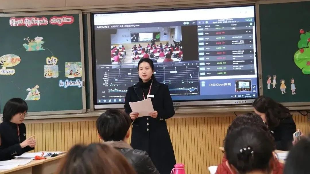 在英語分會場上,易啟紅老師和2.4班的同學們帶來了課堂展示《Unit3 My Friends Story Time》。觀課老師們從情景創(chuàng)設和課堂互動這兩個維度進行了細致的觀察。