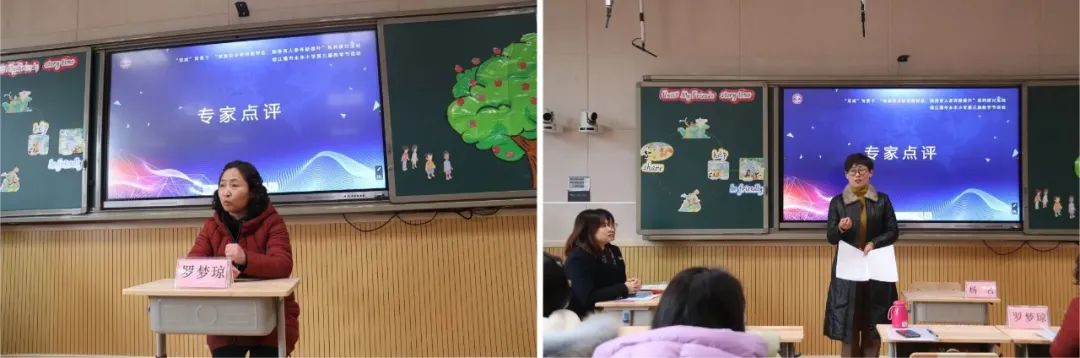 接著,教研室羅夢瓊老師對本次課例研修提出了非常有建設性的意見。羅老師希望大家緊扣小學英語課標,探討課堂互動的新穎模式。楊名老師用四個關鍵詞肯定了本次活動:用智慧,有和諧,促積極,做典型。