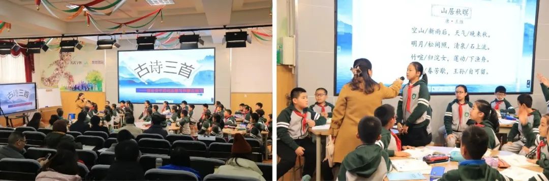 林歡老師和五年級(jí)二班孩子帶來(lái)《山居秋暝》。在林歡老師的帶領(lǐng)下,孩子們走入王維筆下畫一般的詩(shī)作中。林老師注重對(duì)學(xué)生語(yǔ)文思維的訓(xùn)練與培養(yǎng),發(fā)現(xiàn)問(wèn)題,提出問(wèn)題,再一起解決問(wèn)題,給予了學(xué)生廣闊的思考空間,同時(shí)讓學(xué)生的知識(shí)、技能獲得同步發(fā)展??v觀整堂課,令人回味。