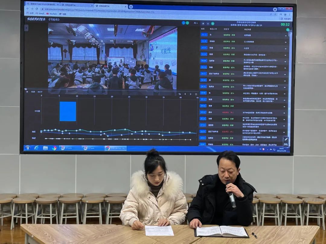 “教而不研則淺,研而不教則空”下午時(shí)分,三位獻(xiàn)課老師與教研組長(zhǎng)通過(guò)蘇格拉底平臺(tái)進(jìn)行了說(shuō)課。從教學(xué)目標(biāo)、教法學(xué)法,特別是協(xié)創(chuàng)課堂三力落腳點(diǎn)等方面對(duì)執(zhí)教課進(jìn)行了剖析。音樂(lè)教研組長(zhǎng)朱蕓老師對(duì)課堂的得與失進(jìn)行了細(xì)致點(diǎn)評(píng),并提出了寶貴建議。數(shù)學(xué)教研組長(zhǎng)張輝進(jìn)老師和語(yǔ)文教研組長(zhǎng)李新紅老師利用智慧手段進(jìn)行現(xiàn)場(chǎng)智慧教研,記錄場(chǎng)景化、數(shù)據(jù)可視化的技術(shù)為教學(xué)賦能,更為教研賦能。