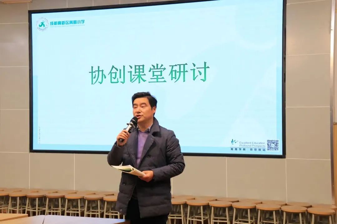 對(duì)協(xié)創(chuàng)課堂的精進(jìn),協(xié)創(chuàng)三力的摸索,凝聚了菁蓉人對(duì)專業(yè)孜孜不倦的追求,同時(shí)也飽含專家領(lǐng)導(dǎo)的指引和關(guān)切。四川省數(shù)學(xué)特級(jí)教師鄭大明老師從曾琴老師的課堂說(shuō)開,對(duì)課堂設(shè)計(jì)進(jìn)行細(xì)致點(diǎn)評(píng),并理清了數(shù)學(xué)知識(shí)讓在場(chǎng)老師收獲頗豐。最后,鄭老師對(duì)我校協(xié)創(chuàng)教育也給予了高度指引,深層次、新高度、多維度。
