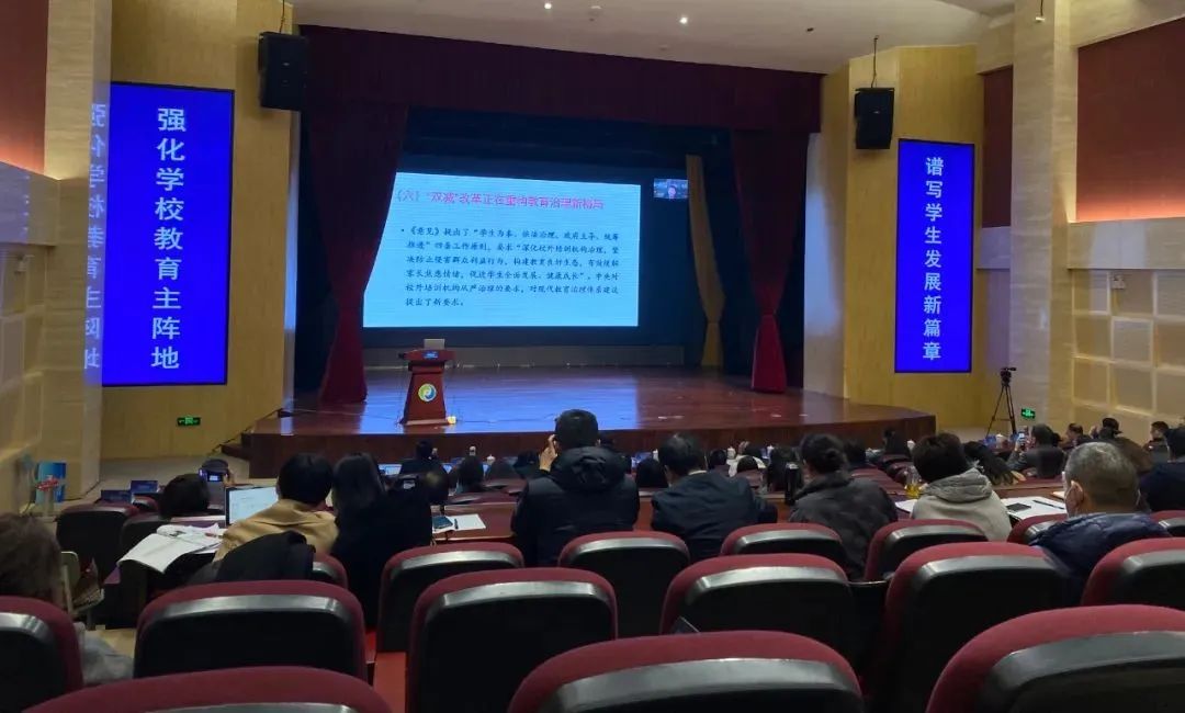 高新區(qū)教育文化和衛(wèi)生健康局彭涌局長(zhǎng)參加大會(huì)并致辭。彭涌局長(zhǎng)指出,“雙減”作為改革開放以來教育運(yùn)行環(huán)境最大一次改變,必將促進(jìn)基礎(chǔ)教育領(lǐng)域的深刻變革,最終實(shí)現(xiàn)去功利化、回歸公益化,去應(yīng)試化、回歸素質(zhì)化,去焦慮化、回歸理性化,讓孩子全面發(fā)展、健康成長(zhǎng),每一個(gè)教育工作者都應(yīng)該更多關(guān)注和思考相應(yīng)的變革與變化。希望每一位參會(huì)的校長(zhǎng)、老師認(rèn)真學(xué)習(xí),用心領(lǐng)會(huì),反哺實(shí)踐,自我更新,探索學(xué)校提質(zhì)增效之路。