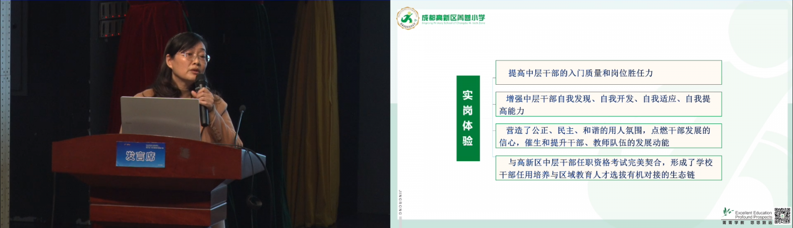 菁蓉小學(xué)陳曦校長(zhǎng)談到“雙減”背景下中層干部培養(yǎng)的校本價(jià)值與意義。