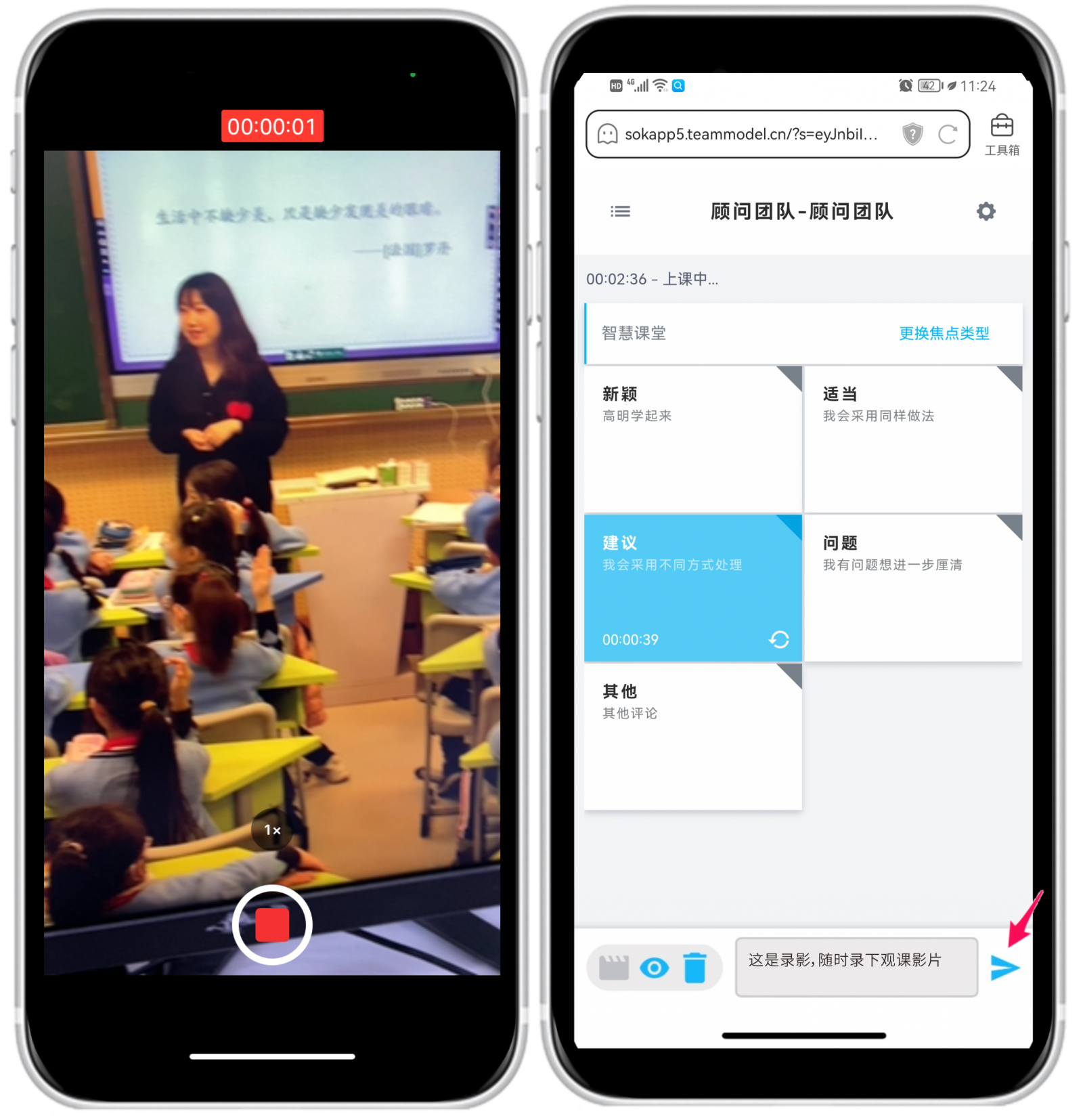 應用場景舉例:師資培育機構指導教授到各基地學校指導實習生教學技巧時,只要拿出具有數(shù)位觀議課功能的HiTA5 APP,就可以一邊觀課一邊使用手機標記、錄音、錄像等,同步給予觀課指導意見,課堂一結束,實習生就能立即查看數(shù)位觀議課紀錄表,獲取依照課堂教學時序的教學指導意見。