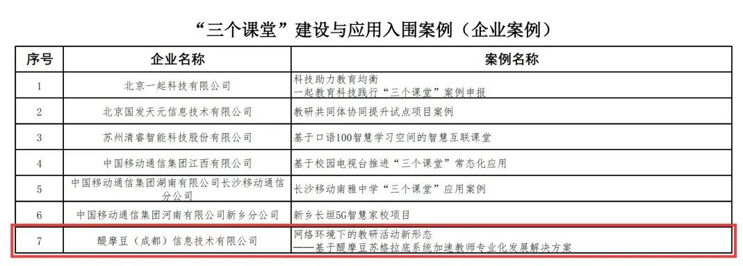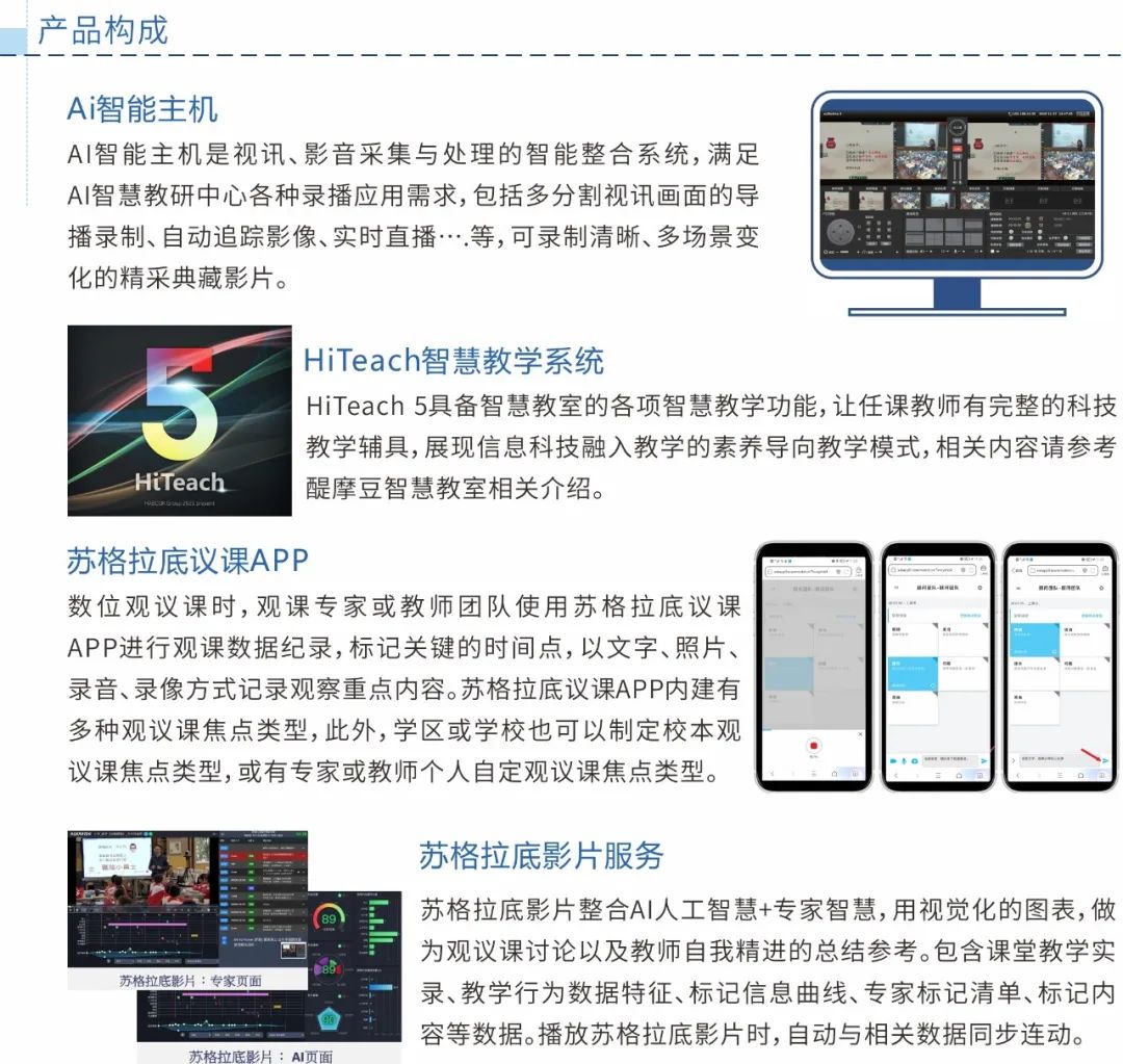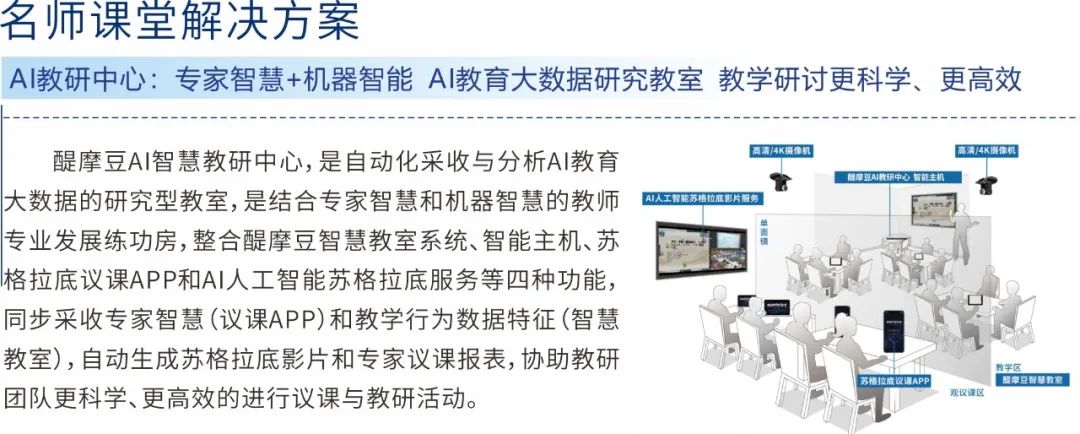 近年來,醍摩豆(成都)信息技術有限公司以促進信息技術與教育教學融合應用、探索信息化背景下育人方式和教研模式,積極推進“互聯(lián)網(wǎng)+教育”發(fā)展,針對基礎教育階段促進教育公平、提升教育質(zhì)量的現(xiàn)實需求為契機,結合大數(shù)據(jù)及AI人工智慧,研發(fā)“AI人工智能蘇格拉底”系統(tǒng),能自動采集、分析教學行為數(shù)據(jù),生成蘇格拉底影片、蘇格拉底報告,并將名師名課匯集于網(wǎng)絡研修平臺,通過課堂教學觀摩、研討、學習、交流活動,建構智慧學區(qū)教研模式新樣態(tài),有效引領區(qū)域教師專業(yè)發(fā)展;通過平臺充分發(fā)揮名師名課示范效應,使名師資源得到更大范圍共享,提升教師隊伍整體素質(zhì),促進發(fā)展更加公平更有質(zhì)量的教育!