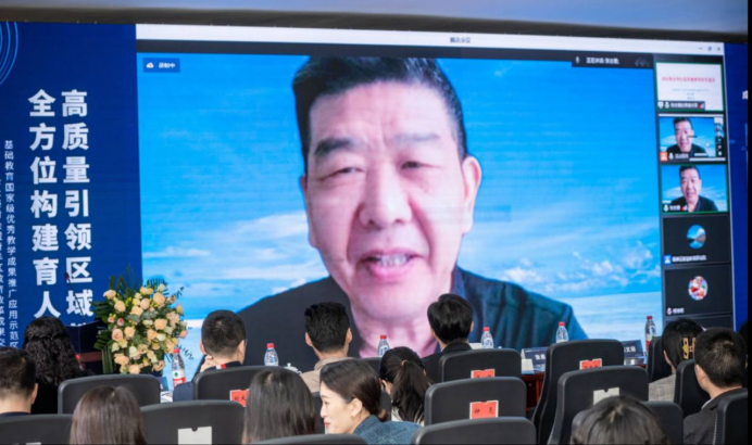 中國(guó)教育學(xué)會(huì)常務(wù)副會(huì)長(zhǎng)楊念魯通過(guò)“云端”方式致辭,他表示提升育人質(zhì)量是當(dāng)前教育迫切任務(wù),其中實(shí)施基礎(chǔ)教育國(guó)家級(jí)教學(xué)成果推廣應(yīng)用計(jì)劃是提升育人質(zhì)量的重要舉措之一。優(yōu)秀教學(xué)成果的推廣應(yīng)用不是簡(jiǎn)單的復(fù)制粘貼,而是要結(jié)合本地本校的實(shí)際,因地制宜地推廣和應(yīng)用,并預(yù)祝本次活動(dòng)圓滿舉辦!