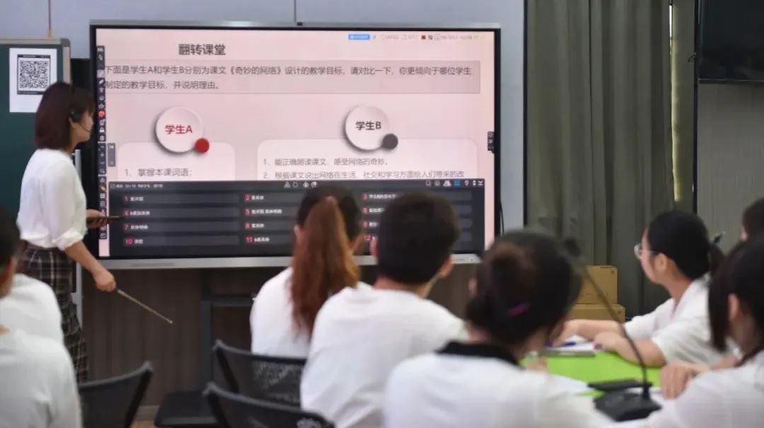 部分老師上課現(xiàn)場(chǎng) 此外,現(xiàn)場(chǎng)師生全體參與的互動(dòng)評(píng)分環(huán)節(jié),以及換場(chǎng)間的隨機(jī)抽獎(jiǎng)等環(huán)節(jié),不斷把現(xiàn)場(chǎng)氣氛推向高潮。