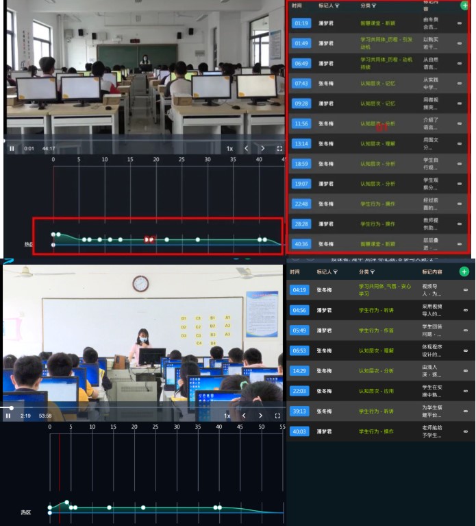 英語組的老師們認(rèn)真學(xué)習(xí)了明德實驗張艷榮老師的寫作課,課上,張老師對文本的分析獨特透徹,對句式結(jié)構(gòu)、行文結(jié)構(gòu)等抽絲剝繭,將寫作技巧的教授滲透在課堂中。也品味了淹中楊老師帶來的閱讀課。楊老師將課堂還給了學(xué)生,讓學(xué)生成為課堂中的主角。對這樣精彩的課例,觀課老師們紛紛打點表示認(rèn)可,并記錄下觀課的心得體會,打點類型有新穎、適當(dāng)、建議,隨著時間軸的移動而分布。