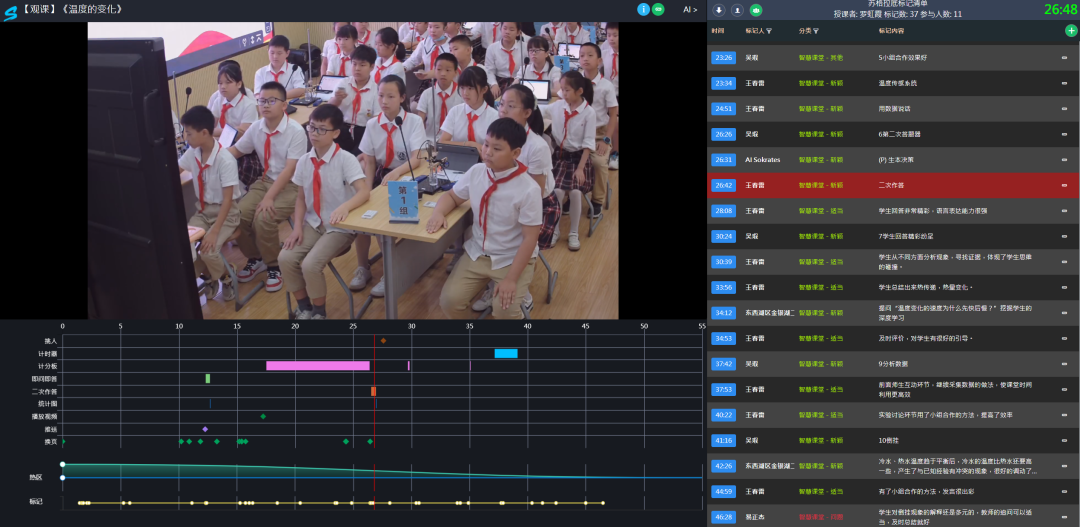 每一位教師臺(tái)前的亮相,背后都有著給力的教研團(tuán)隊(duì)支撐。教研組的老師根據(jù)智慧平臺(tái)的打點(diǎn)議課情況進(jìn)行切點(diǎn)議課,對(duì)這一節(jié)課作了更加深入的解析。每一位老師暢所欲言,像是一場(chǎng)場(chǎng)“頭腦風(fēng)暴”,在此碰撞出了智慧的火花。