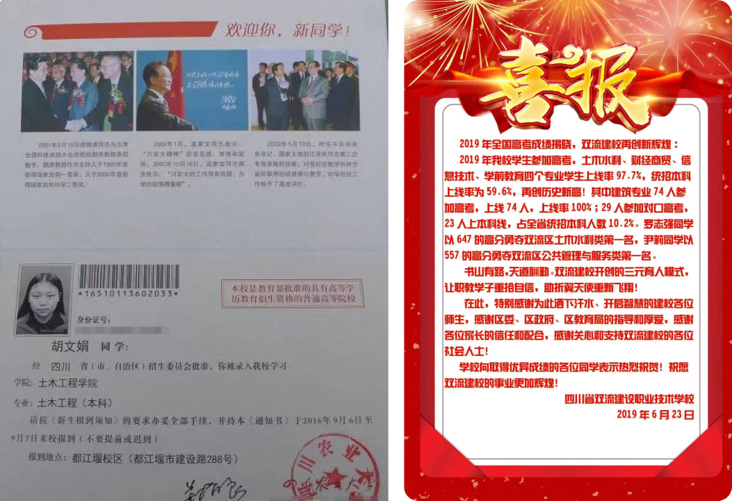 學校狠抓升學教育,升學情況在四川省同類學校中排名前列。通過三年學習,部分孩子在高考中獲得了重點大學的錄取通知書。針對高考升學,學校加強師資力量的培訓,強化學習的輔導力度,增大學生能力檢測的效率和精準。