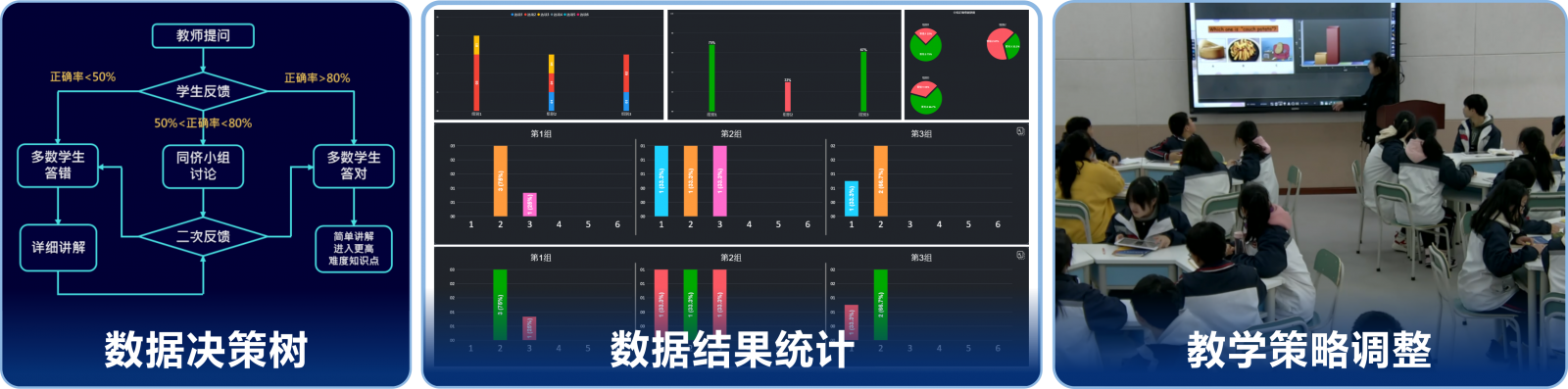 通過HiTeach智慧教學系統(tǒng)的即問即答功能搭配Web IRS(平板/手機),就可以實現(xiàn)課堂同步互動教學,老師通過互動反饋后的數(shù)據(jù)統(tǒng)計進行教學決策,或重新講解,或小組合作討論學習。老師運用這樣的方式精準掌握學情,提升課堂教學質(zhì)量。