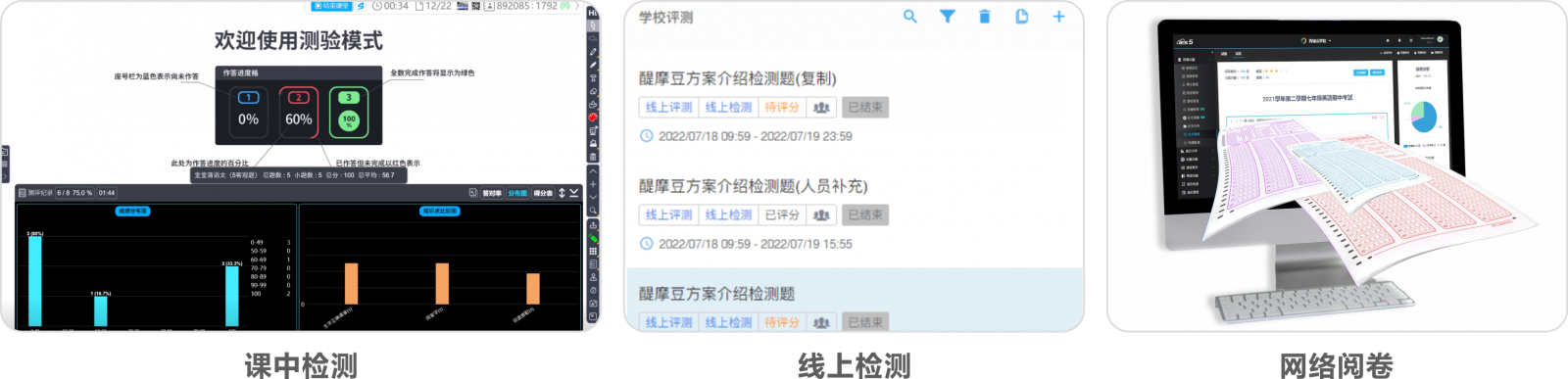靈活組卷,課中、線上、網(wǎng)閱多元檢測活動