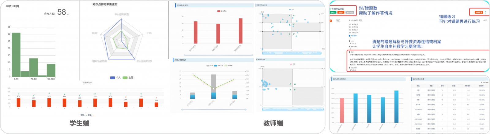 測驗完成后,這些數(shù)據(jù)也會在云端形成作答紀錄,錯題集,不管對教師學情掌握或?qū)W生自我系統(tǒng)性補救學習,都帶來極大的幫助。同時,云平臺還能能高效率地分析大量數(shù)據(jù)并產(chǎn)出學習診斷分析報告,全方位采集學生綜合素質(zhì)數(shù)據(jù),為各級使用者精準的提供學習狀況與學習成效,將評價環(huán)節(jié)綜合應用在學習過程中,落實教學精進策略,提升學校及學生的競爭力。