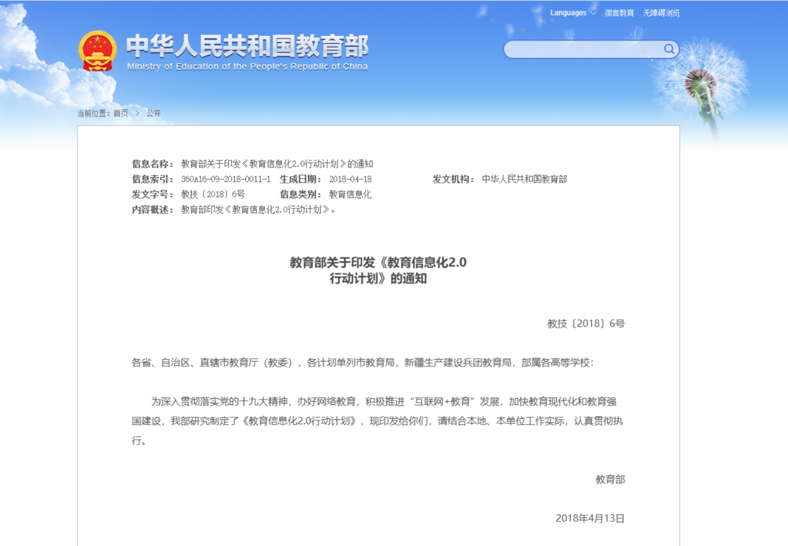 《教育信息化2.0行動計劃》