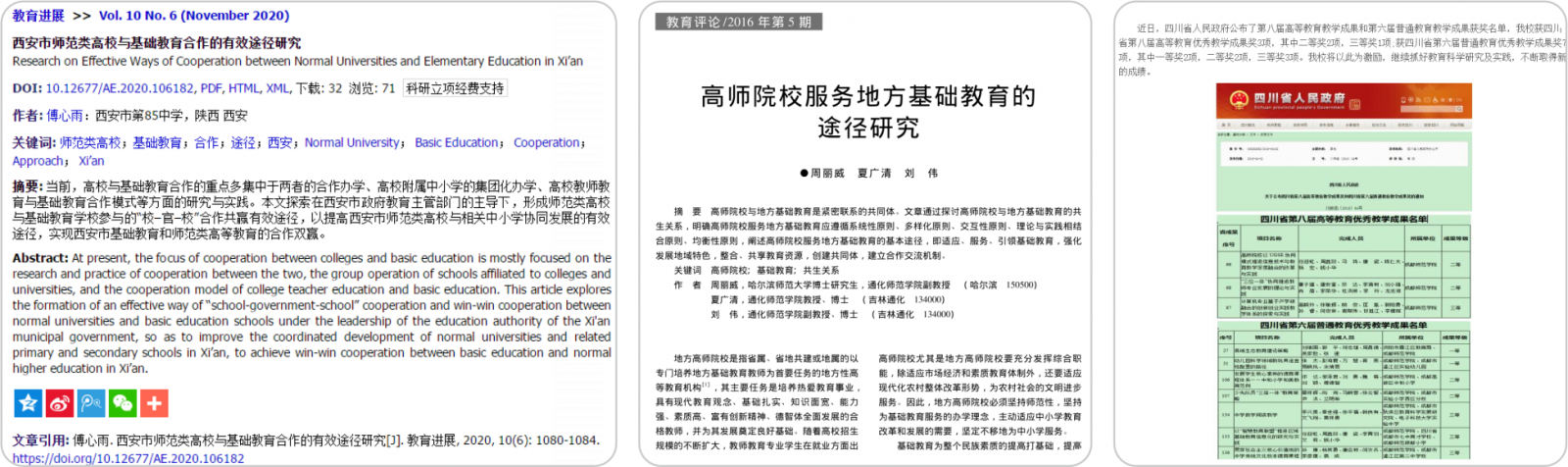 高校服務基礎教育,為基礎教育培養(yǎng)教學專家、出版著作、申請教學成果獎