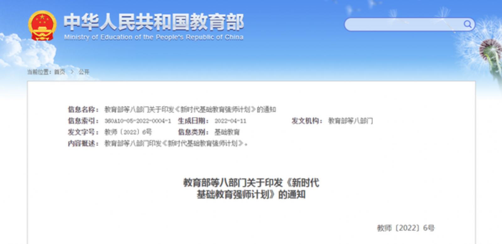 為了著力推動教師教育振興發(fā)展,努力造就新時代高素質專業(yè)化創(chuàng)新型中小學(含幼兒園、特殊教育,下同)教師隊伍,為加快實現(xiàn)基礎教育現(xiàn)代化提供強有力的師資保障,2022年4月,教育部等八部門關于印發(fā)《新時代基礎教育強師計劃》的通知。