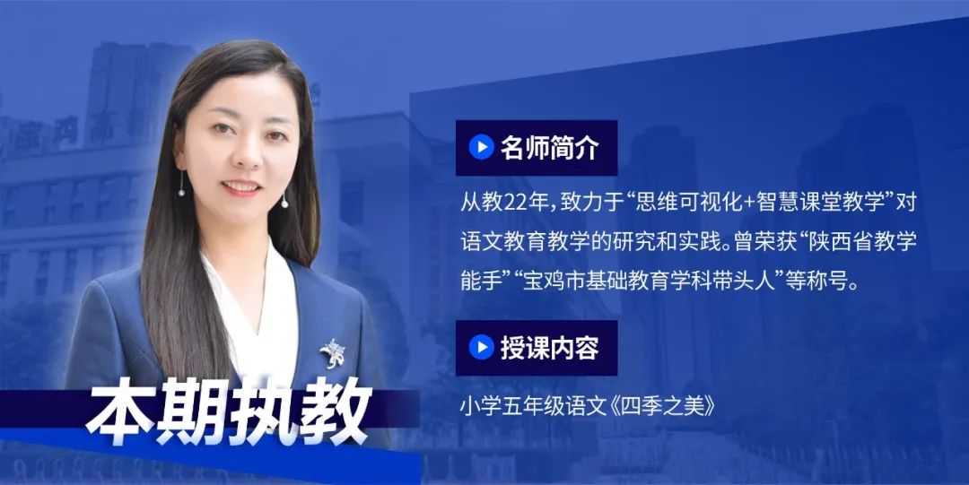寶雞高新第三小學(xué)教師發(fā)展中心主任董淑娟老師進(jìn)行了《四季之美》的課堂展示,本節(jié)課著力研究任務(wù)群視角下的課堂教學(xué)新常態(tài),圍繞如何在課堂教學(xué)中落實(shí)“學(xué)習(xí)任務(wù)群”這一理念來設(shè)計(jì)課堂教學(xué),積極探索課堂的新常態(tài),并且利用醍摩豆智慧教學(xué)系統(tǒng)與學(xué)生進(jìn)行各種形式的互動(dòng),隨機(jī)挑人的提問方式也關(guān)注到了全體學(xué)生,智慧助教,讓思維可視。