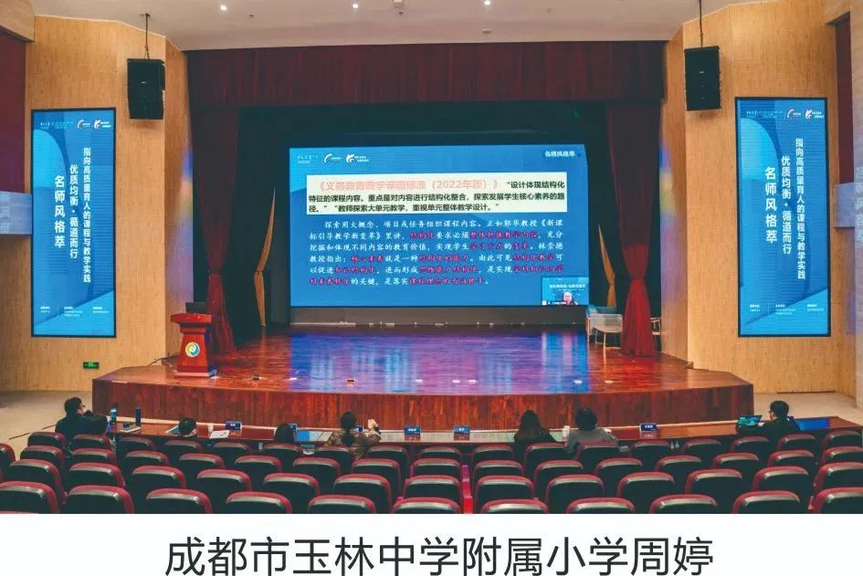 四川省成都市玉林中學(xué)萬軍、四川省成都高新實(shí)驗(yàn)中學(xué)丁靜、成都高新大源學(xué)校張圓、成都師范銀都小學(xué)萬慶華、成都市玉林中學(xué)附屬小學(xué)周婷、成都泡桐樹小學(xué)(天府校區(qū)) 萬里燕、四川省成都高新區(qū)實(shí)驗(yàn)小學(xué)岳佳麗老師分別帶來題為《談?dòng)窳种袑W(xué)物理教研組“觀課議課”活動(dòng)》《“文學(xué)與寫作”任務(wù)群學(xué)習(xí)之“多角度寫景”的鑒賞與寫作中語文高階思維的培養(yǎng)》《高質(zhì)量的單元作業(yè)整體設(shè)計(jì)》《"讀創(chuàng)行"語文綜合性學(xué)習(xí)范式研究》《淺談小學(xué)數(shù)學(xué)結(jié)構(gòu)化教學(xué) ——以小學(xué)“數(shù)與代數(shù)”領(lǐng)域結(jié)構(gòu)化為例》《打造靈動(dòng)、有序音樂課堂——以提升小學(xué)生歌唱表現(xiàn)力活動(dòng)設(shè)計(jì)為例》《五育融合,在農(nóng)場課程中自由生長》的專題匯報(bào)。