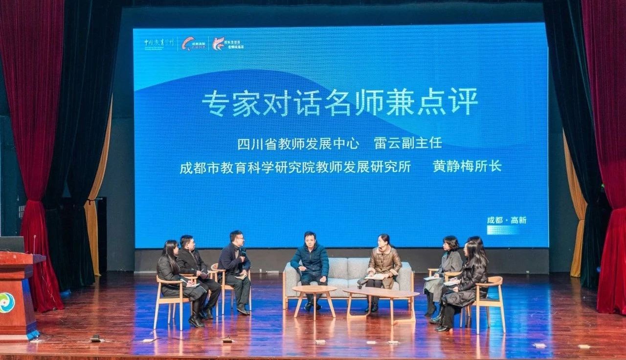 最后,學(xué)術(shù)主持人徐猛副教授與四川省教師發(fā)展中心雷云副主任、成都市教育科學(xué)研究院教師發(fā)展所黃靜梅所長上臺(tái)與名師共話,共探優(yōu)質(zhì)均衡、風(fēng)格建樹之路。