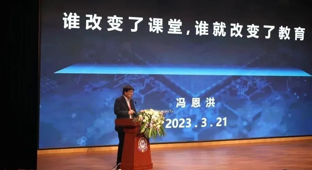 成都市教育科學研究院黨委書記、院長羅清紅以“深耕課堂,數(shù)據(jù)導航,構建教育新生態(tài)”為題向大會作出報告,他指出變革教育教學應正視時代特征,教師的教學應與計算機的優(yōu)勢融合,做到人機一體,提高學習效率,并發(fā)展課外活動,實現(xiàn)五育并舉,發(fā)展個性化、平民式的教育。