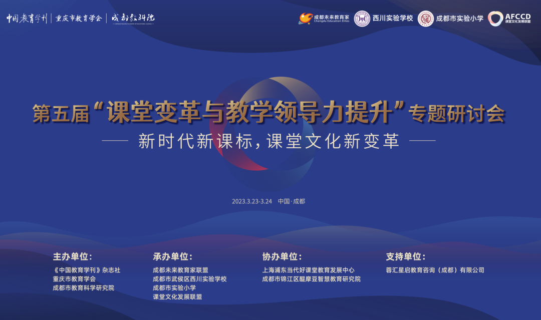 2023年3月23日,由《中國教育學刊》雜志社、重慶市教育學會、成都市教育科學研究院聯(lián)合主辦,上海浦東當代好課堂教育發(fā)展中心、成都市錦江區(qū)醍摩豆智慧教育研究院協(xié)辦的第五屆“課堂變革與教學領導力提升”專題研討會在成都市武侯區(qū)西川實驗學校盛大開幕。中國教育學會副會長、重慶市教育學會會長鐘燕,《中國教育學刊》編委會副主任、編審馬憲平,當代教育名家馮恩洪,中國教育科學研究院副院長陳如平,陜西師范大學教育學部部長李森,成都市教育科學研究院黨委書記、院長羅清紅,金茂學校總校長、金茂教育研究院院長程紅兵,成都市武侯區(qū)教育局黨組成員胡曉東,成都市武侯區(qū)西川實驗學校校長楊光榮等專家出席了開幕儀式,醍摩豆智慧教育研究院院長吳權威也受邀出席本次會議并擔任大會現(xiàn)場課點評專家。