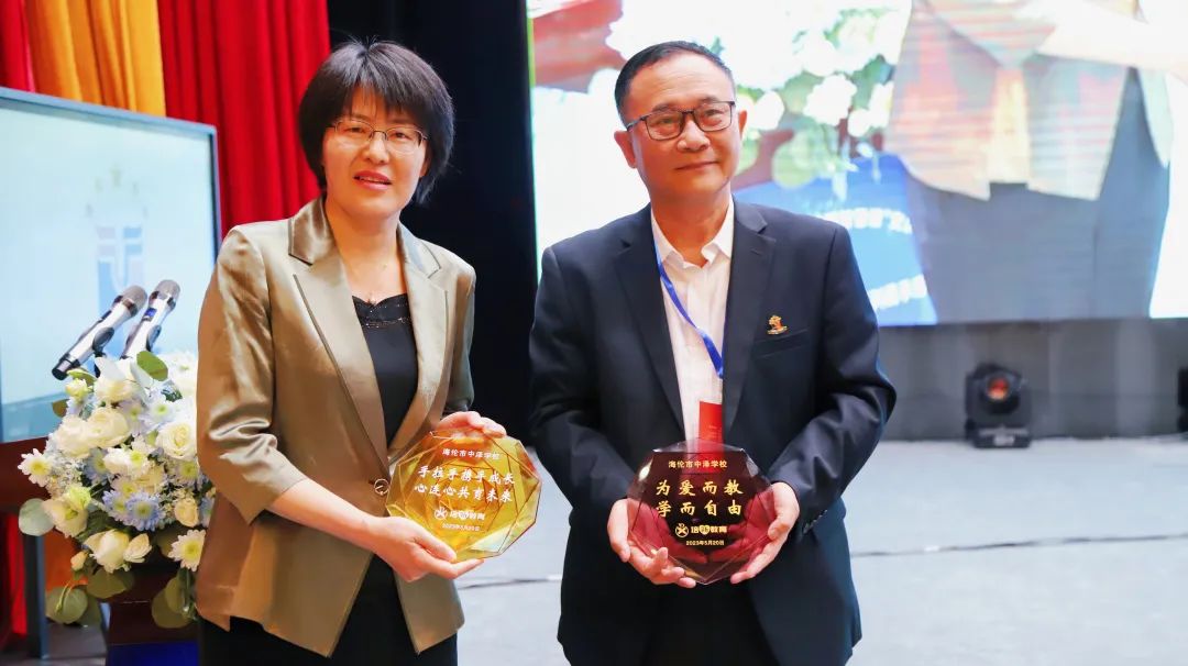 北京市東城區(qū)培新小學(xué)校長(zhǎng)張燕女士通過(guò)三個(gè)數(shù)字進(jìn)行致辭,八年智慧課堂的建設(shè),讓海倫中澤學(xué)校實(shí)現(xiàn)教學(xué)超越;手拉手學(xué)校相識(shí)十八年,見證了中雙教育集團(tuán)海倫學(xué)校這一路的蛻變、發(fā)展;從最開始的3個(gè)學(xué)生,到現(xiàn)今的2800名師生,是海倫中澤學(xué)校從學(xué)科歷程到育人歷程的有力證明, 也是學(xué)校深耕智慧教育的有力證明。并向海倫市中澤學(xué)校贈(zèng)送了兩校“手拉手”聯(lián)誼紀(jì)念品。