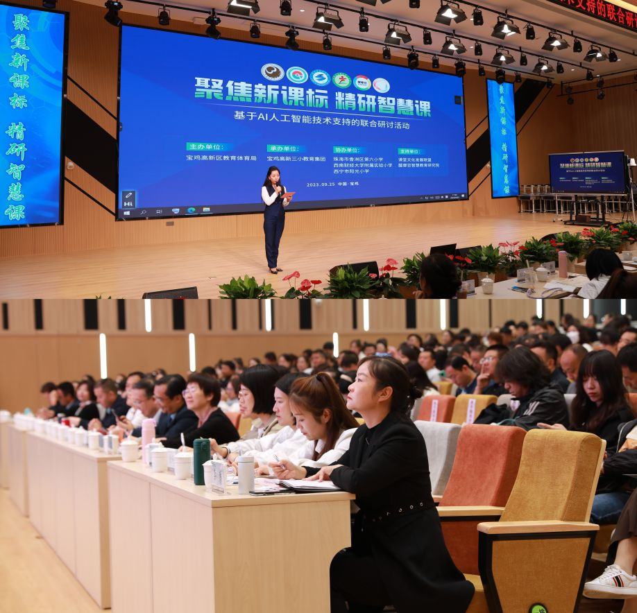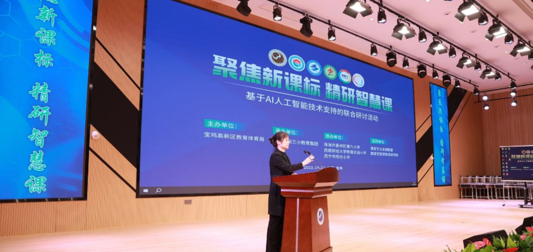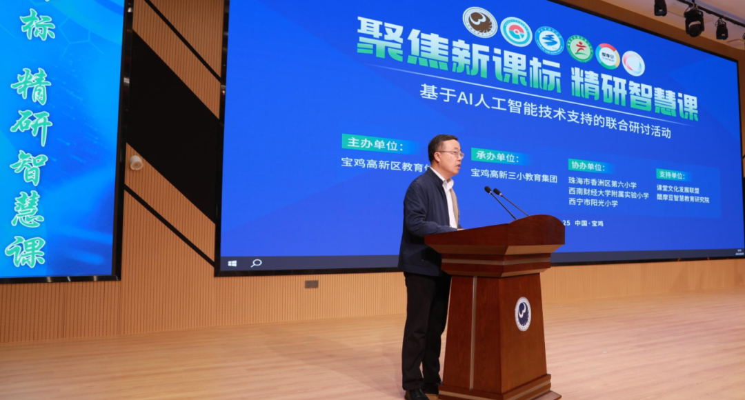 9月25日,寶雞高新區(qū)“聚焦新課標·精研智慧課”——基于AI人工智能技術支持的聯(lián)合研討活動在寶雞高新第三小學東校區(qū)成功舉辦。本次活動由寶雞高新區(qū)教育體育局主辦,寶雞高新第三小學承辦,珠海市香洲區(qū)第六小學、西南財經大學附屬實驗小學、西寧市陽光小學協(xié)辦,課堂文化發(fā)展聯(lián)盟、醍摩豆智慧教育研究院聯(lián)合支持。