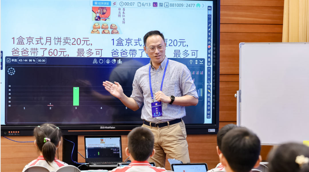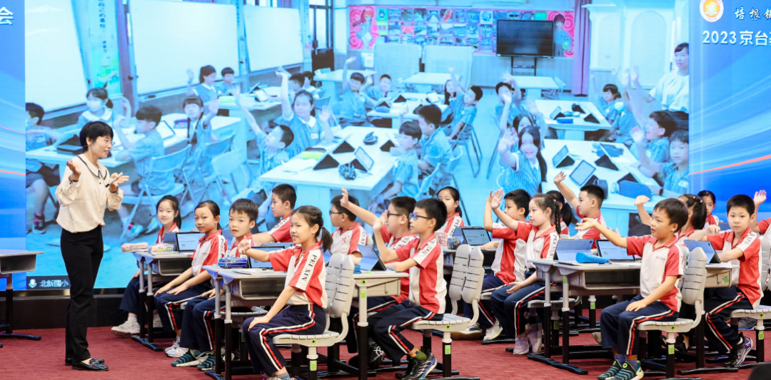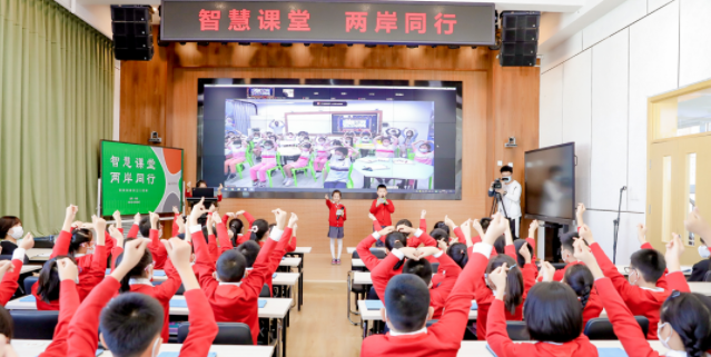 北京市東城區(qū)培新小學(xué)和新北市北新小學(xué)的120余名教師學(xué)生共同參加“智慧課堂兩岸同行-京臺(tái)共上一堂課”主題交流。一塊屏幕、一個(gè)教學(xué)軟件(HiTeach 5)連通兩岸課堂,跨越時(shí)空的兩校師生在云端相會(huì),遠(yuǎn)隔千山萬(wàn)水的學(xué)生們不僅能實(shí)時(shí)聽到課程內(nèi)容,還能積極參與問(wèn)題回答等課堂互動(dòng)環(huán)節(jié)。