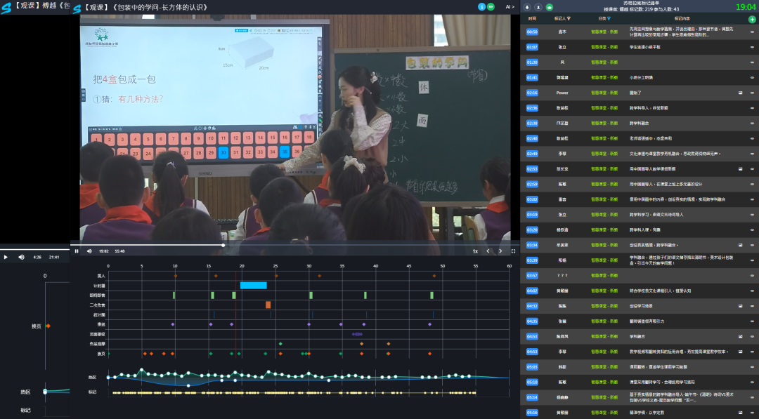 以高質(zhì)量教研,促進(jìn)高質(zhì)量教學(xué)。教研是教師專業(yè)發(fā)展的重要途徑之一,為了讓參訪嘉賓深入了解紫藤小學(xué)的“教研文化”,紫藤小學(xué)數(shù)學(xué)學(xué)科教研組老師,上海市特級教師、正高級數(shù)學(xué)教師翟立安,醍摩豆智慧教育研究院秘書長劉彬?qū)Ρ竟?jié)課進(jìn)行標(biāo)記及點評。課堂觀摩結(jié)束后,課堂影片即時生成,師生互動完整回溯,課堂教學(xué)數(shù)據(jù)專業(yè)分析,專家意見即時獲取,教研與教學(xué)形成閉環(huán)。