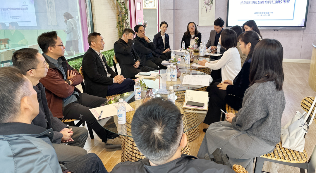 最后,參訪嘉賓和紫藤小學(xué)馬宏韜校長、黃麗霞副校長進(jìn)行深入溝通交流,三方在數(shù)字化校園建設(shè)發(fā)展的主題討論下,就數(shù)字化提升集團(tuán)化辦學(xué)管理、個性化應(yīng)用,人工智能技術(shù)促進(jìn)教學(xué)教研模式創(chuàng)新,新技術(shù)、新理念推動教學(xué)改革與高質(zhì)量發(fā)展等話題進(jìn)行了充分的交流。
