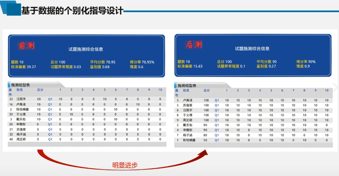 學校以培養(yǎng)適應未來的智慧創(chuàng)新人才為目標,通過技術支持的課堂、課程、評價變革實踐探索,努力為學生提供個性化的學習;學校通過智慧教研進行基于技術的教學評價、教師評價研究,快速提升智慧教研對校本研修的有效作用,為教師備課、上課、評課、議課提供更加可視化、數(shù)據(jù)化、智慧化的支持,在國信區(qū)實驗校工作中取得可喜的成績。
