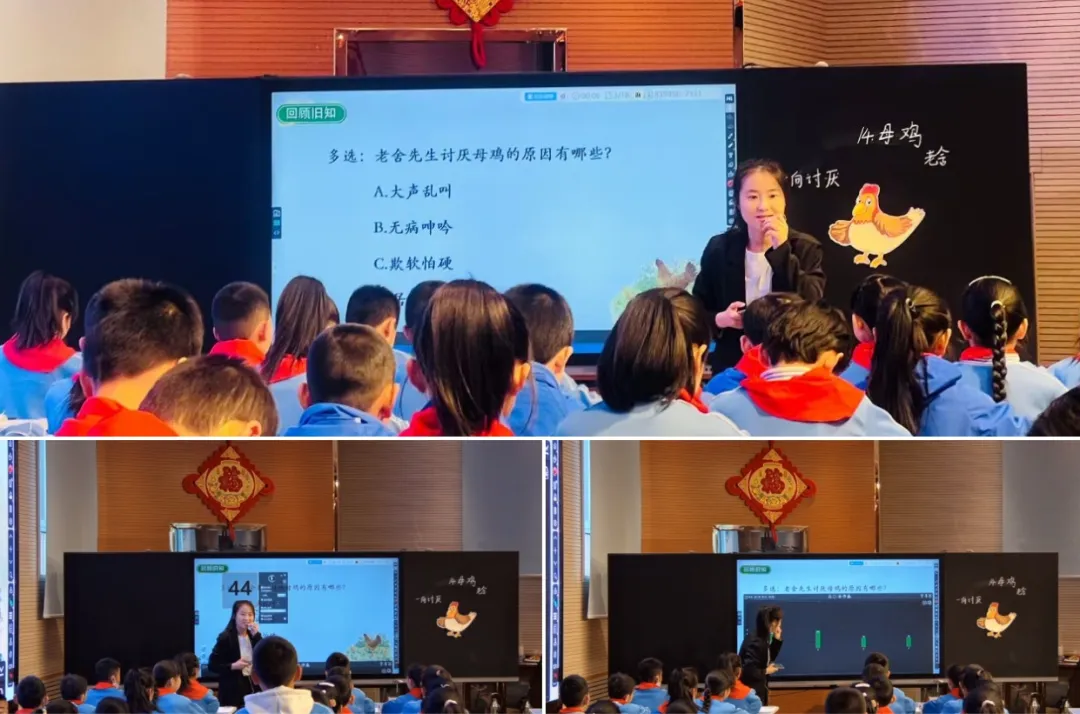 在課例展示環(huán)節(jié)中,西寧市陽光小學(xué)麻寧杰老師進(jìn)行四年級下冊習(xí)作策略單元課例《母雞》的授課。麻老師緊扣單元語文要素,以讀引寫,由引到放,關(guān)注小組評價的多樣性;抓住文章結(jié)構(gòu),作者的語言特點,情感變化為主線,在閱讀文段中體會對比的寫法,現(xiàn)場寫出表揚信和投訴信,落實語文要素,真正做到了一課一得。