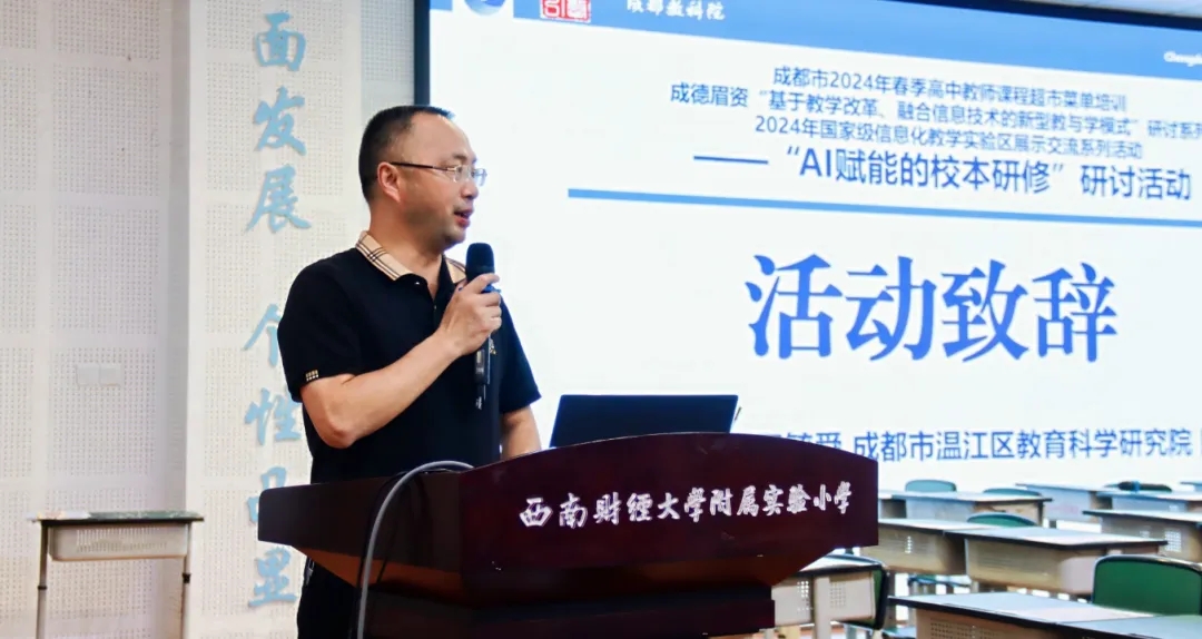 為全面落實(shí)新課標(biāo)理念,優(yōu)化教師的教育教學(xué)行為,推進(jìn)校本教研變革,提升教育教學(xué)質(zhì)量,促進(jìn)成都市國家級信息化教學(xué)實(shí)驗(yàn)區(qū)建設(shè),由成都市教育科學(xué)研究院主辦、成都市溫江區(qū)教育科學(xué)研究院承辦的成都市2024年春季高中教師課程超市菜單培訓(xùn)、成德眉資“基于教學(xué)改革、融合信息技術(shù)的新型教與學(xué)模式”研討系列、2024年國家級信息化教學(xué)實(shí)驗(yàn)區(qū)展示交流系列活動之“AI賦能的校本研修”研討活動在西南財(cái)經(jīng)大學(xué)附屬實(shí)驗(yàn)小學(xué)成功舉行。