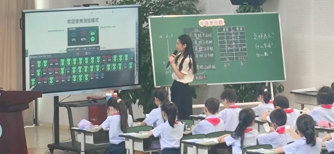 西南財(cái)經(jīng)大學(xué)附屬實(shí)驗(yàn)小學(xué)優(yōu)秀教師王雪宇老師帶來數(shù)學(xué)課課例展示《字母表示數(shù)》,王老師巧妙地運(yùn)用數(shù)字化教學(xué)工具HiTeach5的即問即答、隨機(jī)挑人、二次作答,隨堂測驗(yàn)等功能,展現(xiàn)了一堂信息技術(shù)與課堂教學(xué)深度融合的高品質(zhì)課程。與此同時(shí),現(xiàn)場的教育同仁們同步展開觀課與議課活動,對本堂課的教學(xué)過程進(jìn)行評價(jià),并提出各自的肯定和建議。