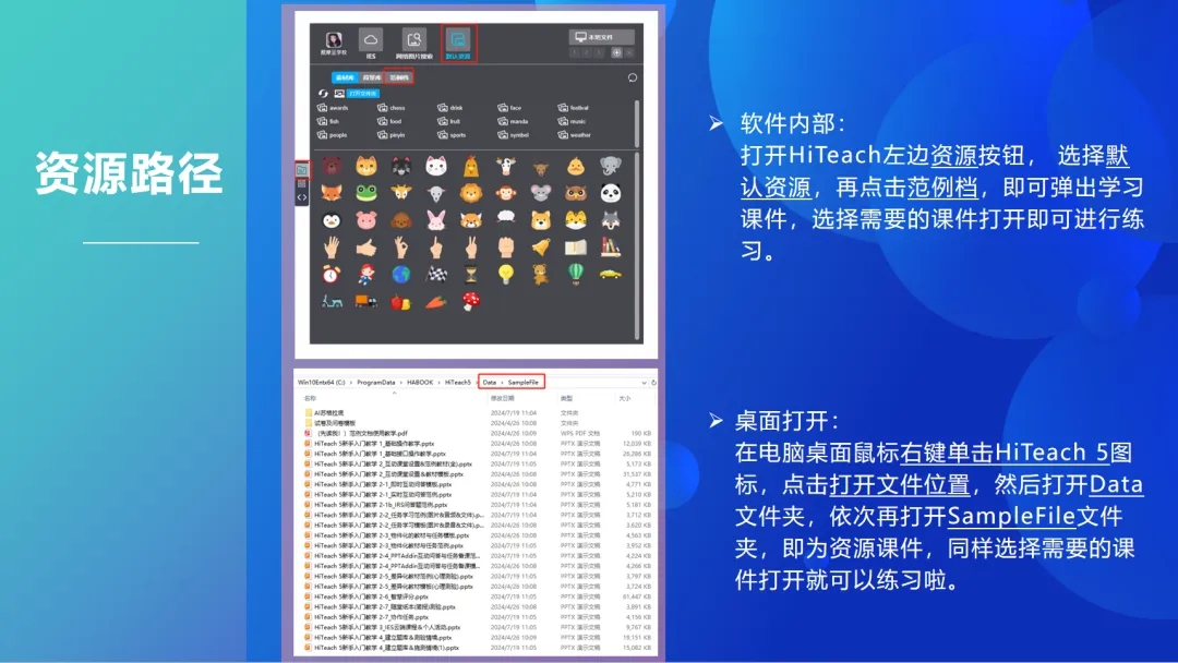 內(nèi)置學(xué)習(xí)資源,隨取隨用,盡在HiTeach范例檔。