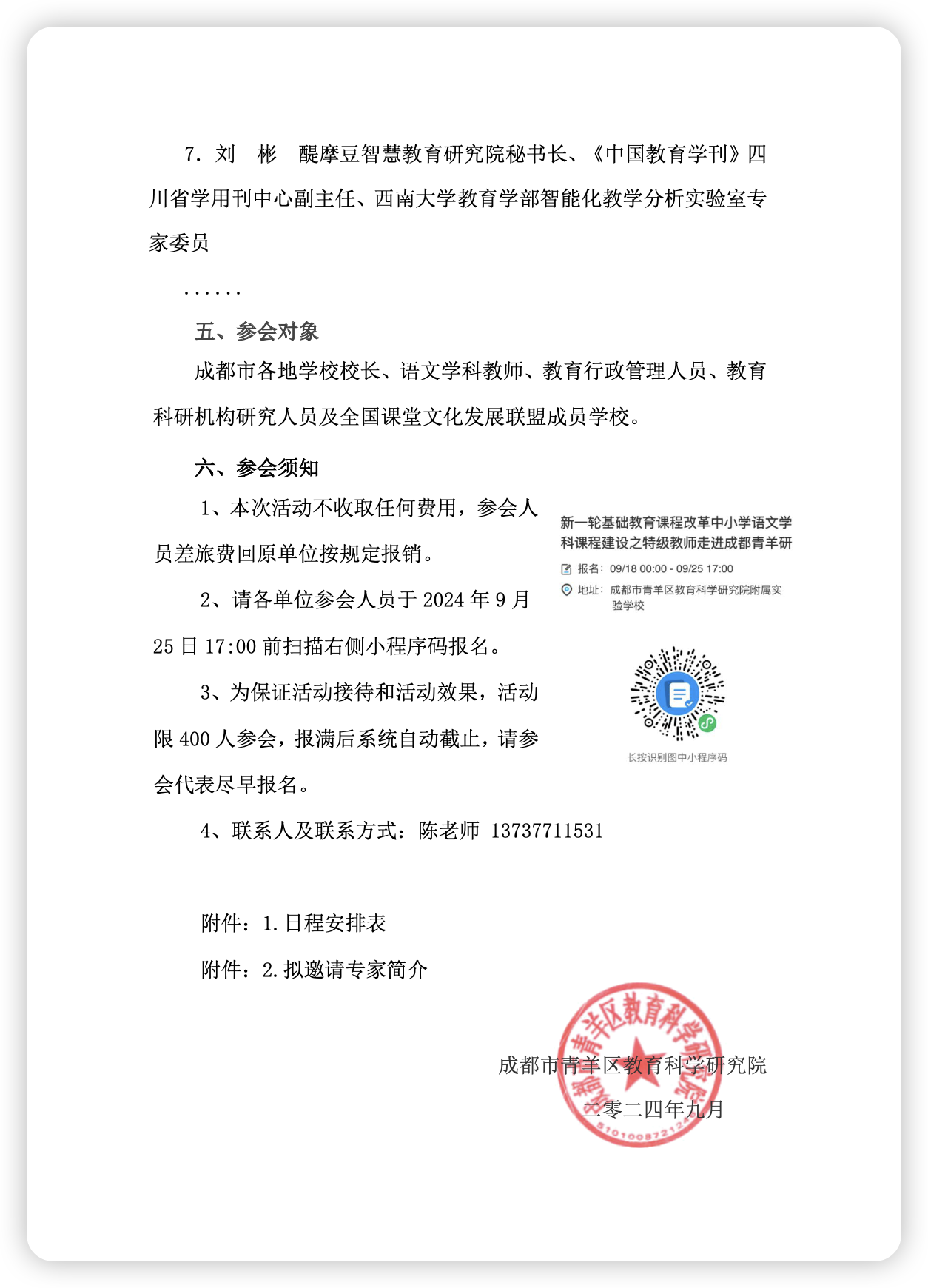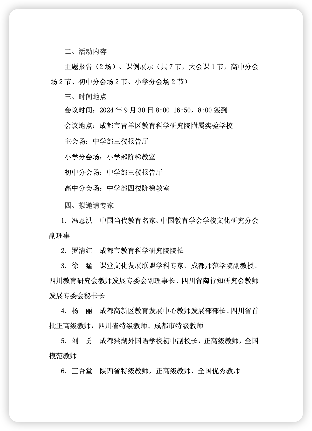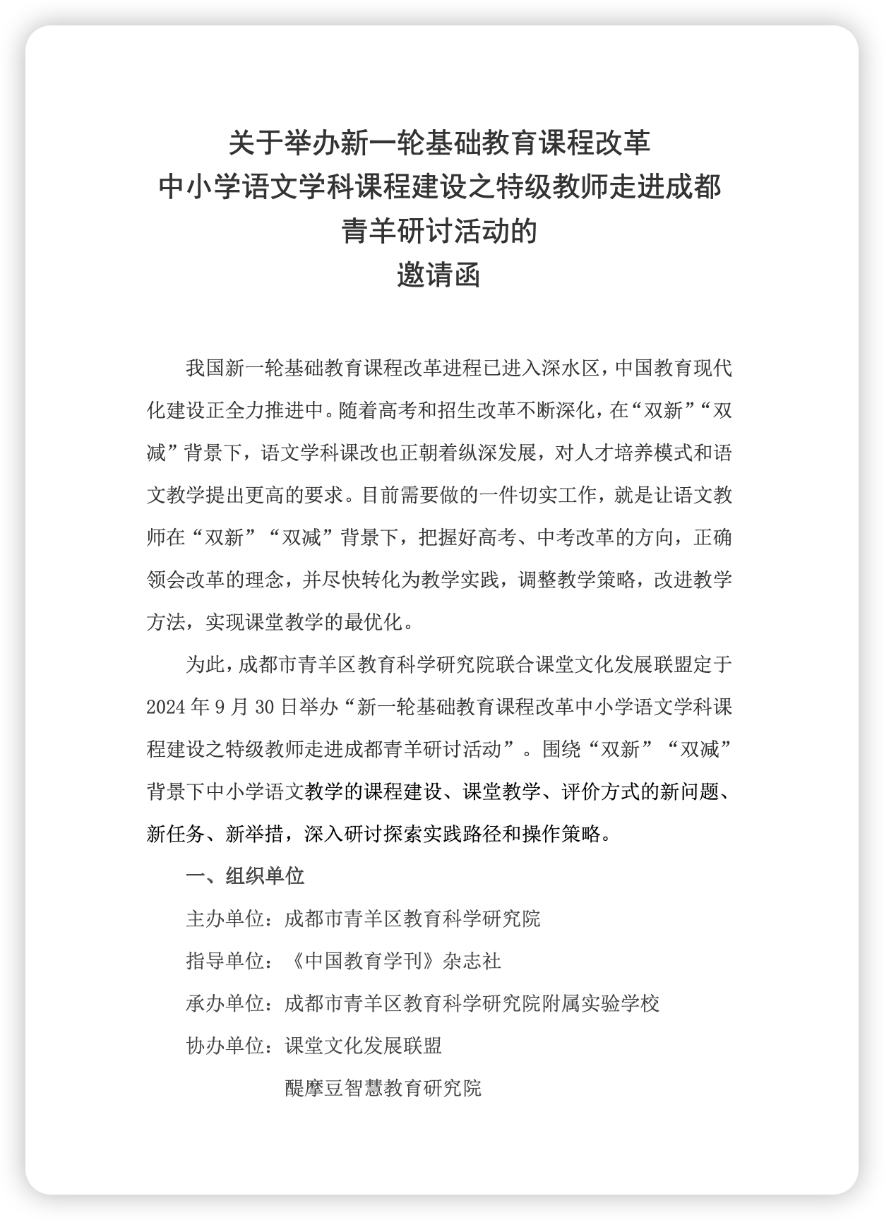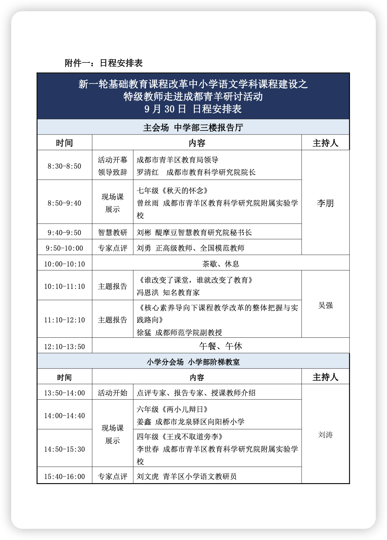 【活動(dòng)通知】新一輪基礎(chǔ)教育課程改革中小學(xué)語(yǔ)文學(xué)科課程建設(shè)之特級(jí)教師走進(jìn)成都青羊研討活動(dòng)