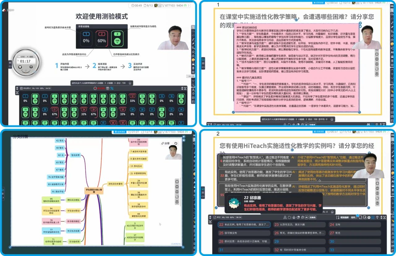 在主題分享環(huán)節(jié),醍摩豆智慧教育研究院院長吳權(quán)威帶來→《HiTeach 5s新功能分享》,他教授圍繞“連接”這一核心理念,逐一展示了AI如何巧妙嵌入教科書;AI自動批改作業(yè)(主觀題)的精準高效,以及云端心智圖如何助力學(xué)生構(gòu)建知識框架的清晰脈絡(luò)。此外,教材、課程資源均實現(xiàn)了無縫連接,讓教學(xué)過程變得更強大與便捷。 在“醍摩豆咖啡館”互動環(huán)節(jié)中,醍摩豆智慧教育研究院劉彬秘書長帶來→《2025醍摩豆專家大會互動交流》專題分享,他妙用HiTeach教學(xué)工具,匯聚大家的心聲,再借助AI,對收集到的內(nèi)容進行智能分類與深度總結(jié)提煉,最終生成了一幅條理清晰、內(nèi)涵豐富的心智圖,為醍摩豆產(chǎn)品的持續(xù)優(yōu)化與升級提供了寶貴的參考與啟示。 隨后,大會總結(jié)了2024-2025年度表現(xiàn)優(yōu)異的智慧學(xué)校、智慧老師,并進行線上頒獎及表彰。 寶雞高新三小教育集團李琳校長、四川雙流建設(shè)職業(yè)技術(shù)學(xué)校周小研校長,西南財經(jīng)大學(xué)附屬實驗小學(xué)任菊老師、成都市新都區(qū)新川外國語學(xué)校鐘杰老師、云南省蒙自市惠民小學(xué)的楊雅麟老師、成都市龍江路小學(xué)中糧祥云分校賈冬老師、成都市站東小學(xué)??驴评蠋煼謩e從智慧學(xué)校的探索應(yīng)用和課堂教學(xué)的實踐經(jīng)驗進行發(fā)言分享。 本次會議還通過線上演示、抽獎互動展示了5s版本的趣味新功能:HiTA 5投屏與直播;課堂教學(xué)小游戲——打地鼠、摘星星、火箭升空;大轉(zhuǎn)盤和戳戳樂,這些功能不僅適配于無學(xué)生終端的智慧教室環(huán)境,還讓這場云端盛會變得生動活潑、別開生面。 最后,醍摩豆智慧教育研究院理事長陳權(quán)作總結(jié)發(fā)言。他向在暑期仍線上參會的各位老師、專家及校長們,表達了最誠摯的歡迎與感謝。隨后,對本次會議進行了全面而精煉的總結(jié),他強調(diào),在未來的探索征途中,期望各學(xué)校能與醍摩豆并肩同行,以AI為翼,以數(shù)智為帆,共同開創(chuàng)一個更加智慧、更加輝煌的教育新未來。 本次專家大會與新品分享會的成功舉辦,為醍摩豆的發(fā)展注入了新的活力與靈感。未來,醍摩豆將堅定不移地秉持“用戶至上”的核心理念,將用戶的每一份期待與需求作為創(chuàng)新的源動力,不斷精進產(chǎn)品技術(shù),優(yōu)化服務(wù)流程,力求在每一個細節(jié)上都能超越用戶的期望,為用戶創(chuàng)造更加卓越、貼心且個性化的產(chǎn)品和服務(wù)體驗,攜手共創(chuàng)智慧教育的美好未來。