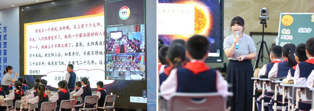 9月26日,由遂寧市教育局主辦的“教育數(shù)字化工作推進(jìn)會暨人工智能賦能教學(xué)教研方式變革研討活動”在洋渡實驗學(xué)校盛大舉行。中國教育學(xué)會第九屆理事會副監(jiān)事長楊念魯,全國知名教育家馮恩洪,遂寧市教育局副局長錢春紅,成都市錦江區(qū)教育科學(xué)研究院副院長、電教館館長曾乾炳,成都市龍江路小學(xué)中糧祥云分校黨支部書記、校長黃成鳳,《中國教育學(xué)刊》四川省學(xué)用刊中心主任陳權(quán),醍摩豆智慧教育研究院秘書長劉彬等400余名教育工作者、部門領(lǐng)導(dǎo)、學(xué)校代表、專家出席本次活動。 遂寧市教育局副局長錢春紅致辭強(qiáng)調(diào),人工智能正重塑社會格局,結(jié)合黨的二十大報告及相關(guān)規(guī)劃要求,遂寧教育需以 AI 為核心引擎,破解資源不均衡、教學(xué)模式單一等問題,推動教育從 “規(guī)模化普及” 向 “精準(zhǔn)化提質(zhì)” 轉(zhuǎn)型,并明確 AI 賦能教育的戰(zhàn)略意義與落地要求,為全市教育數(shù)字化轉(zhuǎn)型指明方向。 中國教育學(xué)會第九屆理事會副監(jiān)事長楊念魯在致辭中指出,人工智能重塑教育生態(tài),帶來技術(shù)紅利的同時,也向教育工作者提出三大核心命題:重構(gòu)知識傳授模式,推動課堂向虛實融合轉(zhuǎn)型;重塑核心素養(yǎng)培養(yǎng),避免 AI 工具化陷阱,堅守教育本質(zhì);重建教師角色定位,從“傳授者”轉(zhuǎn)變?yōu)?ldquo;引路人”。 全國知名教育家馮恩洪先生帶來《人工智能深度賦能教育背景下教育者的責(zé)任和擔(dān)當(dāng)》專題報告。報告中,馮先生立足教育數(shù)字化發(fā)展全局,結(jié)合數(shù)智時代教育改革趨勢,深入解答了“如何讓AI技術(shù)真正服務(wù)于課堂變革”“如何避免技術(shù)應(yīng)用流于形式”等核心問題。他的分享既有理論高度,又有實踐指導(dǎo)意義,不僅為我市教育數(shù)字化工作提供了專業(yè)指導(dǎo),更為未來推進(jìn)“AI+教育”提供了理論支撐與戰(zhàn)略思路,幫助我市在教育數(shù)字化轉(zhuǎn)型中精準(zhǔn)發(fā)力。 西南財經(jīng)大學(xué)附屬實驗小學(xué)郭莉姍老師攜手?jǐn)y手洋渡實驗學(xué)校、西南財經(jīng)大學(xué)附屬實驗小學(xué)五年級孩子們帶來精彩的語文同步課堂《太陽》,課堂上,郭老師從學(xué)情出發(fā),由詞句到文本再到方法,通過即時互動積極調(diào)動了成都、遂寧兩地學(xué)生的學(xué)習(xí)熱情,利用差異化推送學(xué)習(xí)資源,兩端孩子共學(xué),讓孩子們感悟太陽的神奇之處,學(xué)習(xí)真實發(fā)生。 這節(jié)別開生面的“同步課堂”,打破了傳統(tǒng)同步課堂僅限于視聽感知的局限,實現(xiàn)了真正意義上的同步互動與優(yōu)質(zhì)教育資源的無縫共享。尤為值得一提的是,本節(jié)同步課堂展示了人工智能在促進(jìn)區(qū)域教育均衡發(fā)展中的巨大潛力,為四川省網(wǎng)鏈共享計劃的深入推廣與實施樹立了典范,還為遂寧市網(wǎng)鏈共享計劃引領(lǐng)學(xué)校提供了一條切實可行、易于落地的實施路徑。 五年級語文《太陽》(主端-遂寧洋渡實驗學(xué)校現(xiàn)場) 五年級語文《太陽》(遠(yuǎn)端-西南財經(jīng)大學(xué)附屬實驗小學(xué)現(xiàn)場)