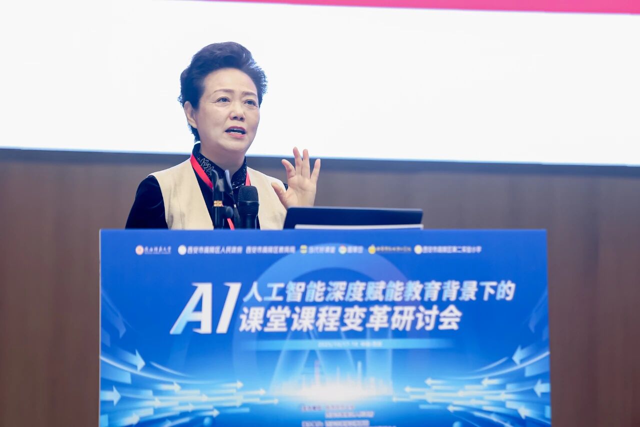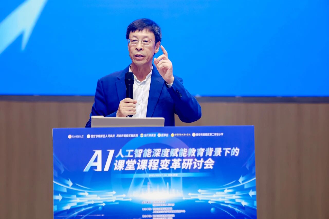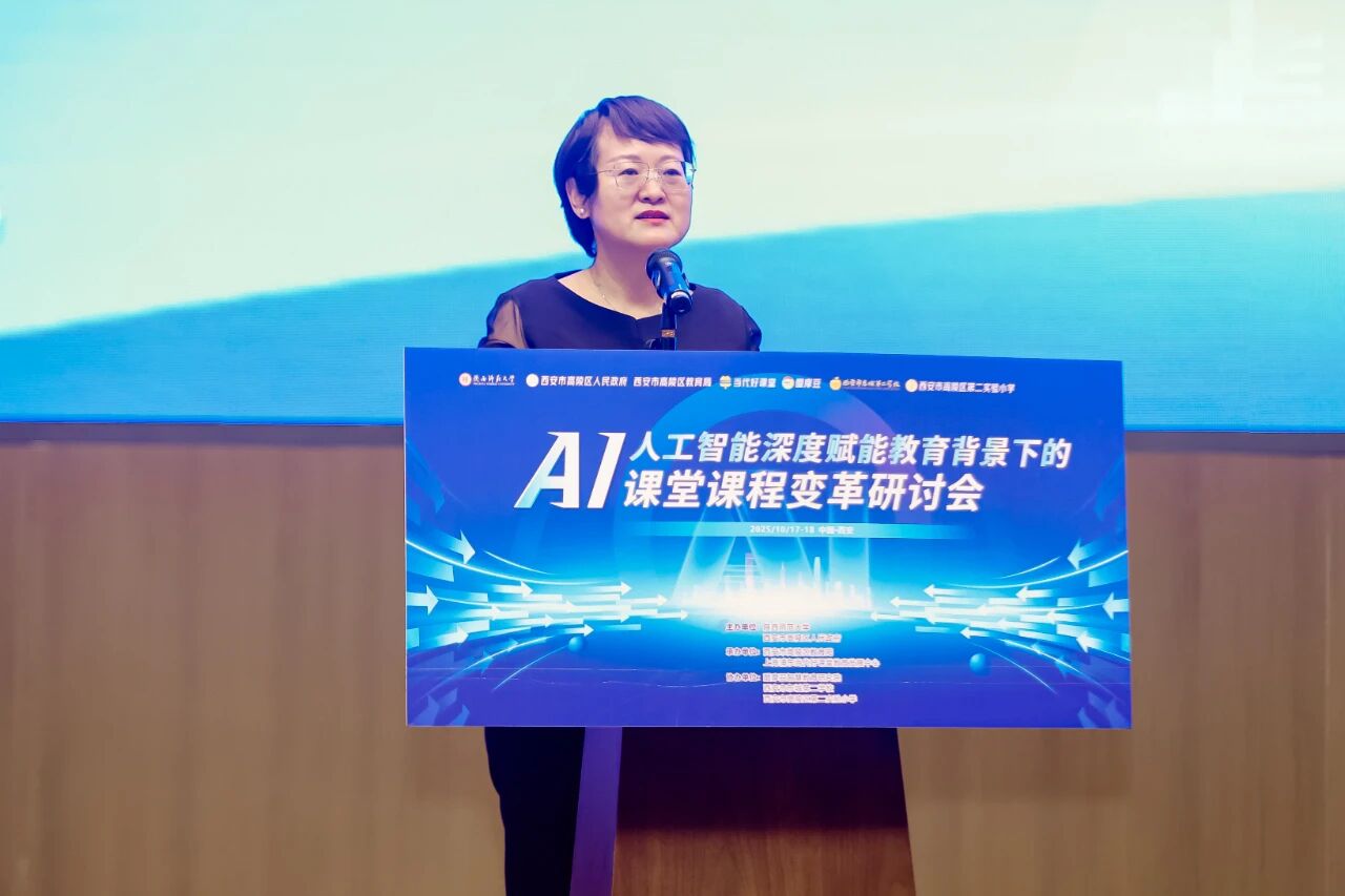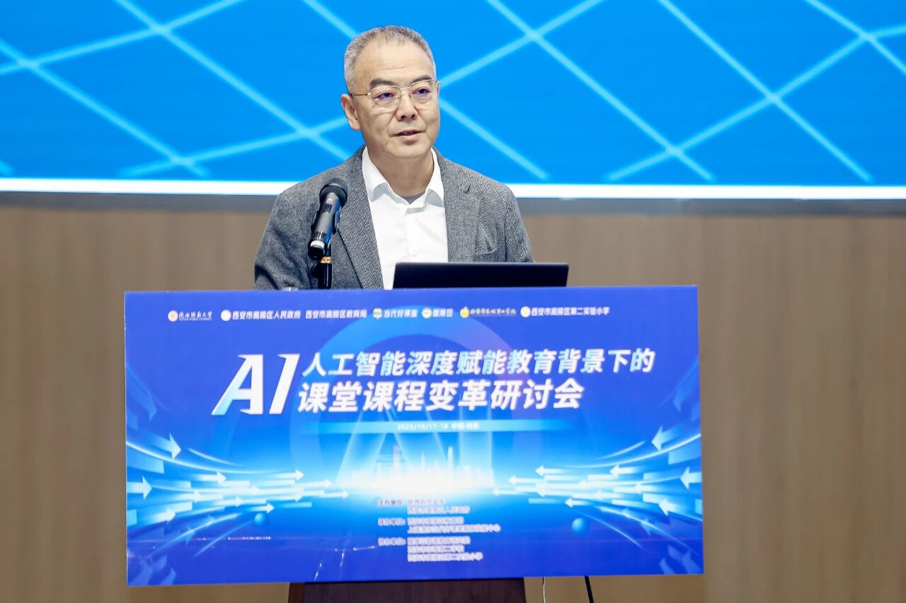秋來風(fēng)景異,在這兼具收獲與憧憬的金秋十月,17-18日“人工智能深度賦能教育背景下的課堂課程變革”研討會在高陵區(qū)召開。本次研討會由陜西師范大學(xué)、西安市高陵區(qū)人民政府主辦,高陵區(qū)教育局、上海浦東當(dāng)代好課堂教育發(fā)展中心承辦,醍摩豆智慧教育研究院協(xié)辦。 中國教育學(xué)會第九屆理事會副監(jiān)事長楊念魯;中國教育學(xué)會副會長,北京市豐臺區(qū)承澤小學(xué)黨支部書記、校長王歡;北京教育學(xué)院原黨委書記,《中國教育學(xué)刊》編委會副主任、編審(教授)馬憲平;北京教育學(xué)院原副院長、北京市特級教師協(xié)會會長湯豐林;當(dāng)代教育名家馮恩洪先生;醍摩豆智慧教育研究院秘書長劉彬等教育專家以及來自陜西、西安、青海、寧夏、江蘇及延安、寶雞、銅川等省內(nèi)外的相關(guān)領(lǐng)導(dǎo),中小學(xué)校長、教研組長和教師代表700余人參加了本次研討。 本次會議由《中國教育學(xué)刊》編委會副主任、編審馬憲平主持。 《中國教育學(xué)刊》編委會副主任、編審馬憲平 陜西師范大學(xué)黨委常委、副校長任曉偉與高陵區(qū)人民政府副區(qū)長薛霞熱情致辭。他們指出,本次研討會是高陵區(qū)落實國家、省市教育工作會議精神,深入貫徹國家教育數(shù)字化戰(zhàn)略部署及發(fā)展新質(zhì)生產(chǎn)力相關(guān)要求的務(wù)實行動,是高陵區(qū)與陜西師范大學(xué)深入推進(jìn)校地融合發(fā)展的生動實踐,也是持之以恒推進(jìn)高陵教育“1+6”教育體系,著力打造“優(yōu)學(xué)高陵”品牌,加快建設(shè)區(qū)域高質(zhì)量教育體系這的重大舉措 陜西師范大學(xué)黨委常委、副校長 任曉偉
