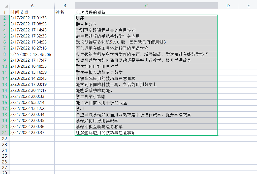 1.在Excel檔案中,選取所有要貼入HiTeach的文字欄位,然后復制(鍵盤快捷鍵:Ctrl + C)。