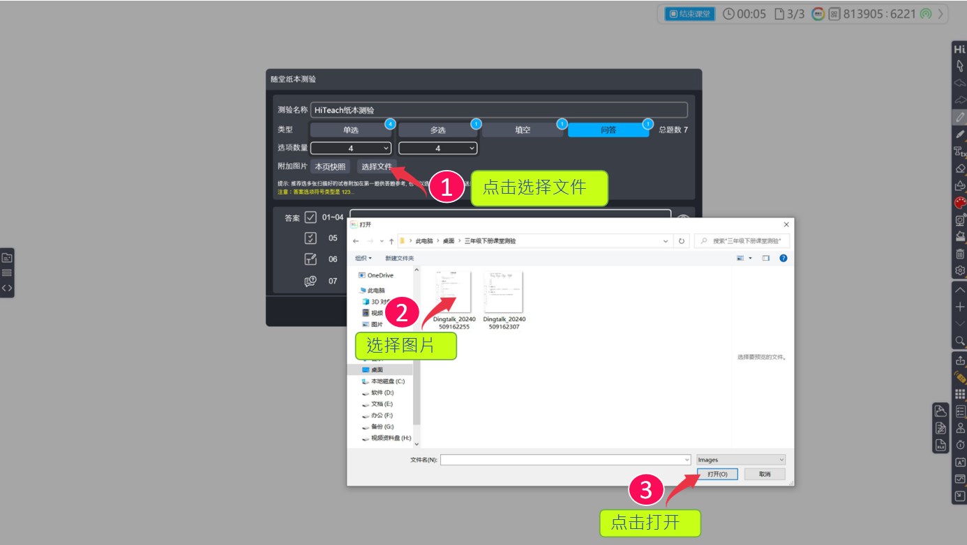 出現(xiàn)開啟視窗后,選擇試卷圖檔存放的資料夾,再選取這次測(cè)驗(yàn)的試卷圖檔,然后點(diǎn)選打開鈕。