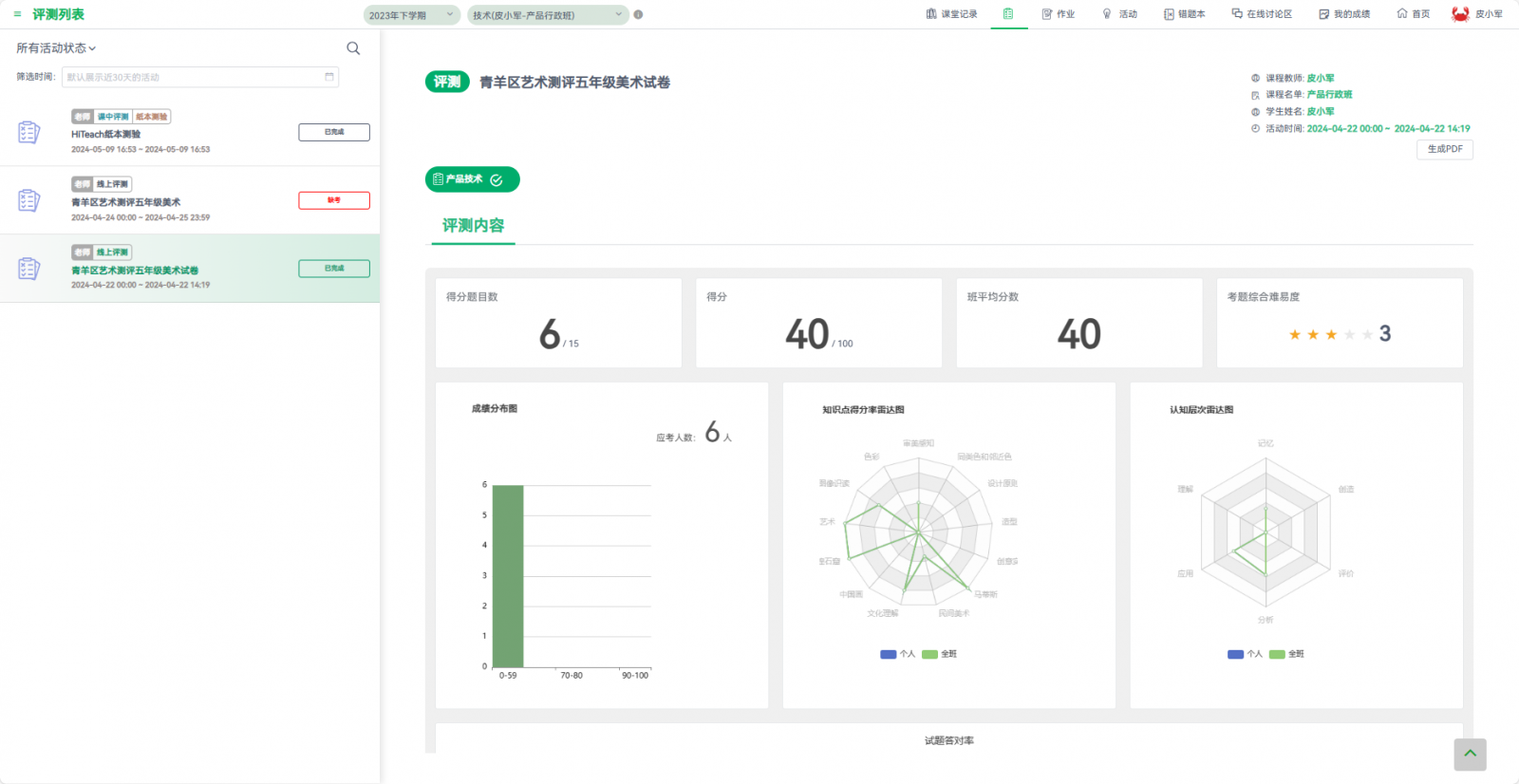 學(xué)生進(jìn)入平臺(tái)后(學(xué)生端平臺(tái)稱為AClass ONE智慧學(xué)伴)即可查看測(cè)驗(yàn)結(jié)果、或進(jìn)行錯(cuò)題練習(xí)。